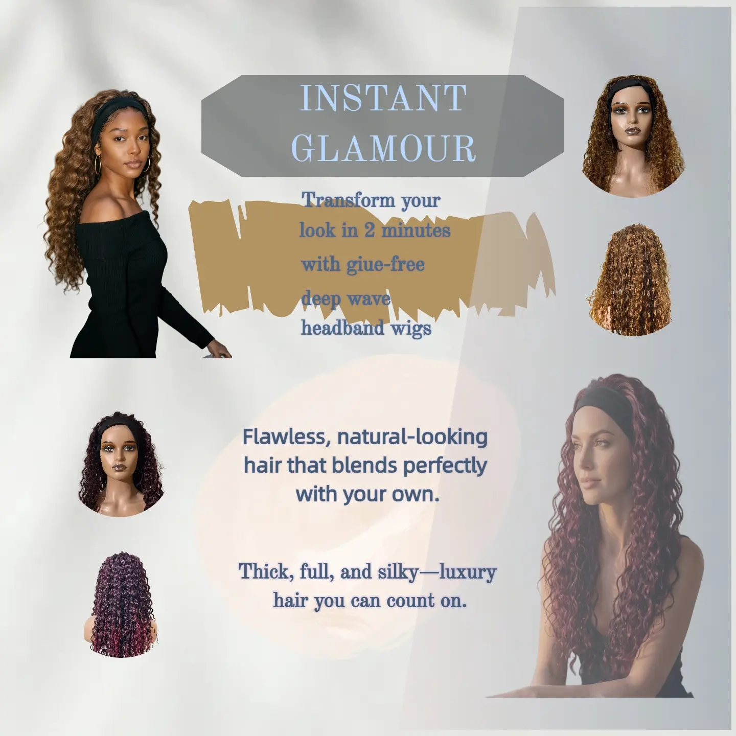 Curly Headband Wig —glueless ready to wear wig Voluminous, Tight Curls; Synthetic Hair Designed for Black Women; Non-Lace Headband Wig; 150% Density (Natural Color)