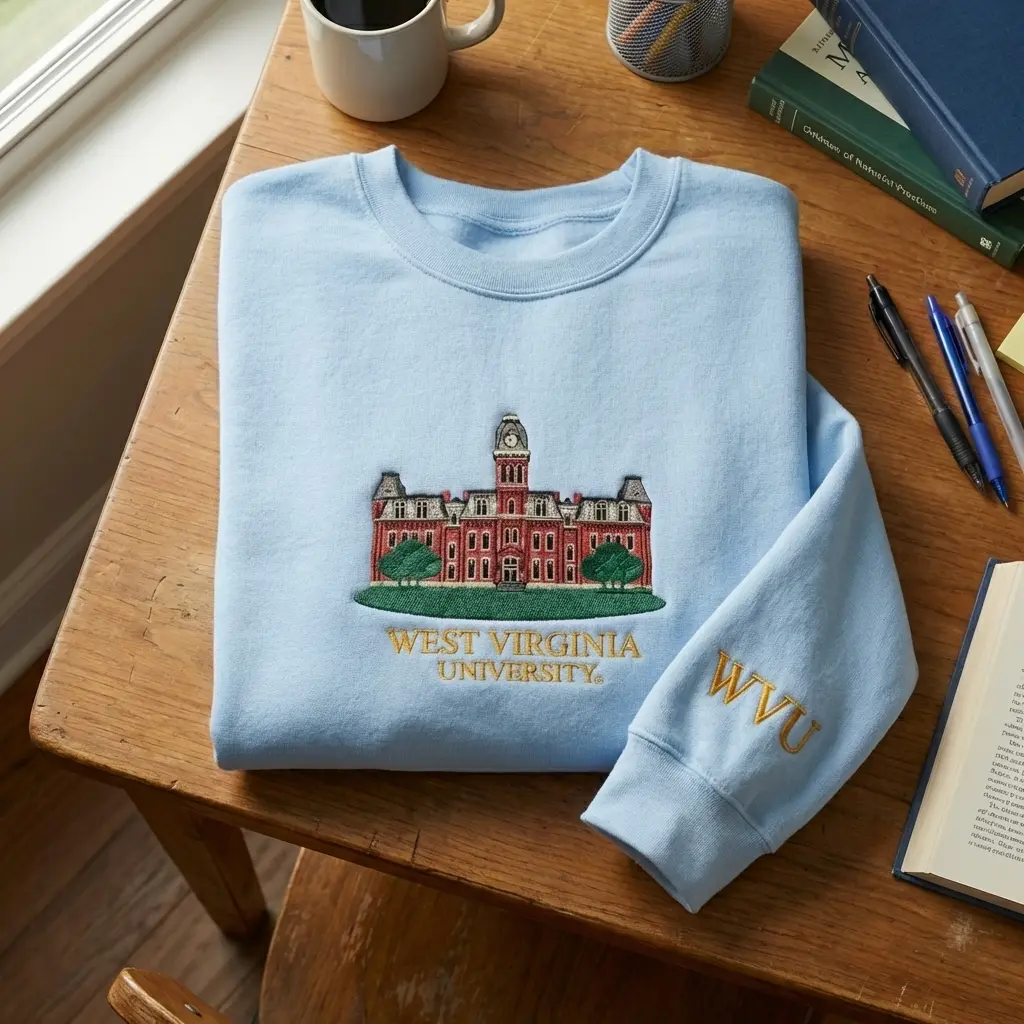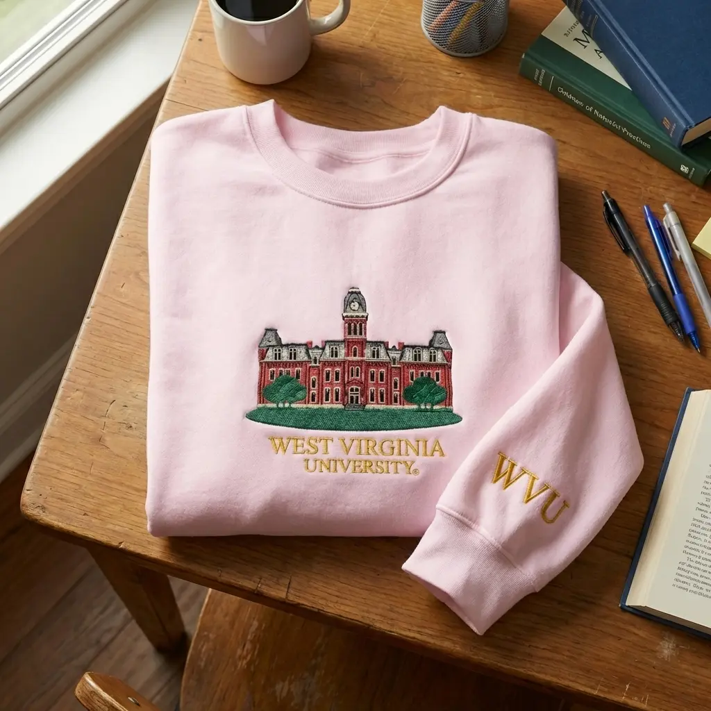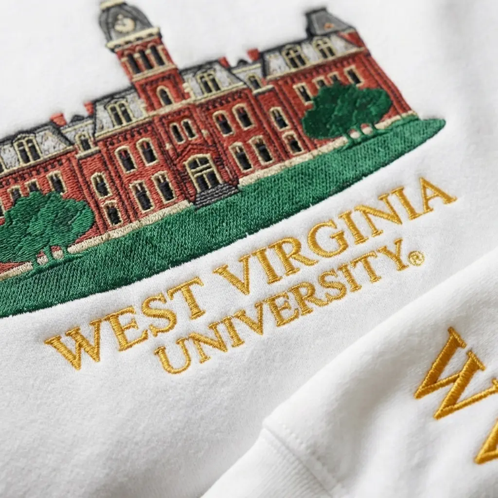 University Embroidered Sweatshirt WVU Crewneck | College Aesthetic Vintage Campus Sweater | Cozy Preppy Outfit | University Gift for Students & Alumni | Fall Outfit Essential | TikTok Viral College Style