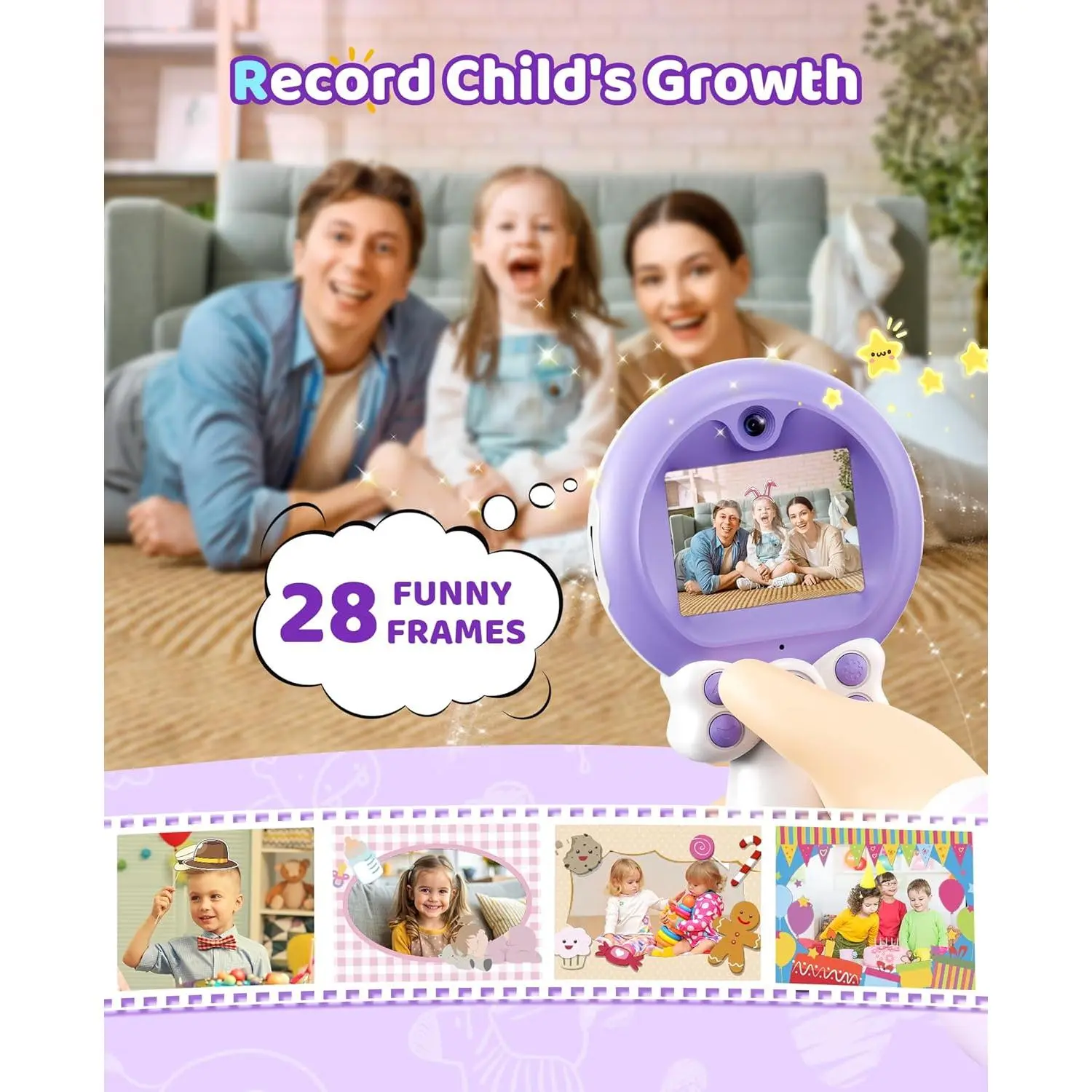 Spark Creativity: This digital camera features a selfie lens, flash, 28 fun frames, 8x digital zoom, time-lapse and puzzle games.It empowers to explore their imagination and capture unique moments.I can't wait to see how they capture life!