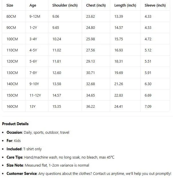 100% Premium Cotton FabricCrafted from high-quality, soft, and breathable cotton, this kids' t-shirt is gentle on sensitive skin, delivering all-day comfort and making it a perfect gift for children.
