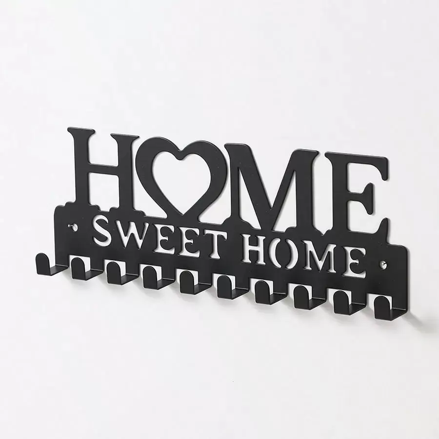 1pc Black Key Holder Wall Mounted Storage Rack, Metal Art Decorative Hook For Coats, Hats, Entrance Hallway