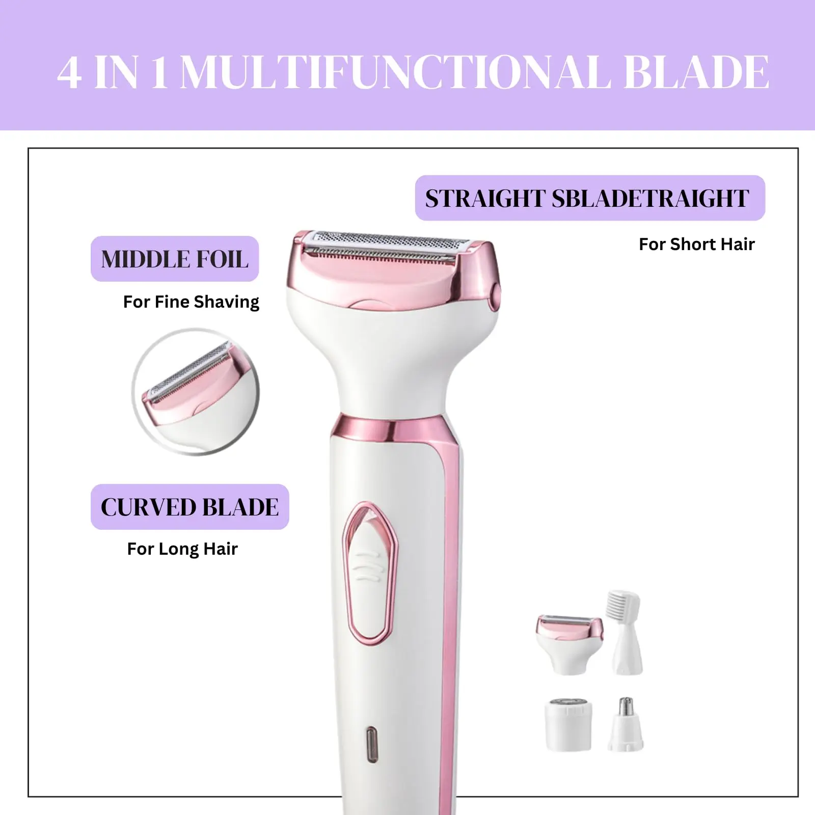 4-in-1 Electric Bikini Trimmer for Women or men, four-Head Body and Facial Shaver, Rechargeable & Dry Razor, Hair Removal Tool, Cordless Rechargeable Trimmer, High Quality Trimmer, Festival Gift Idea