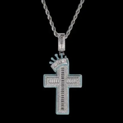 HIPHOP style, will glow-in-the-dark crown icing cross pendant, 2 pieces set, pendant + necklace, send boyfriend girlfriend gift