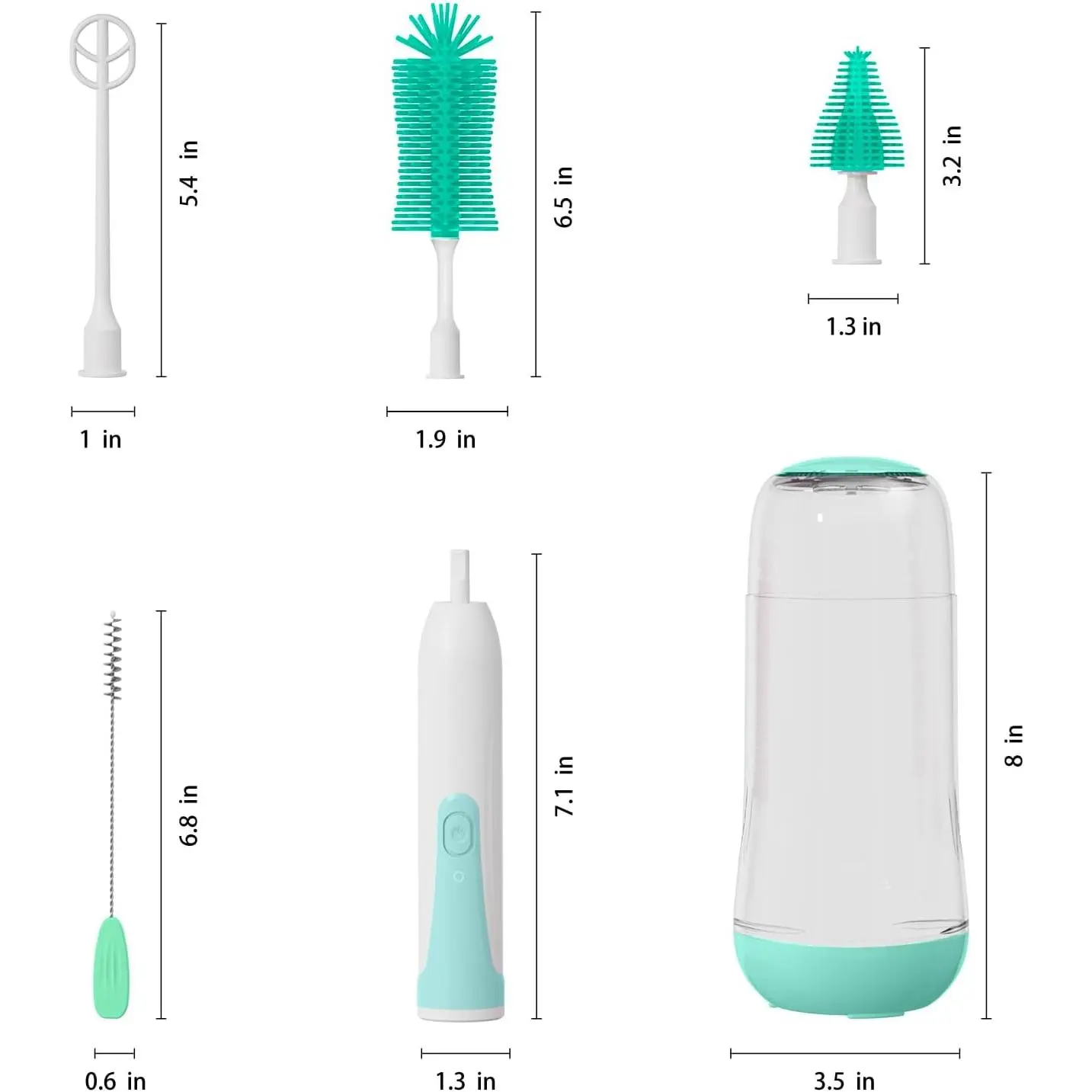 SAFE MATERIAL: The bottle cleaner brush set is made of liquid silicone and food grade ABS, to make sure it's safe for in a dishwasher, boil water or steamer.IPX7 waterproof rating, make the bottle washer easy to clean and last longer