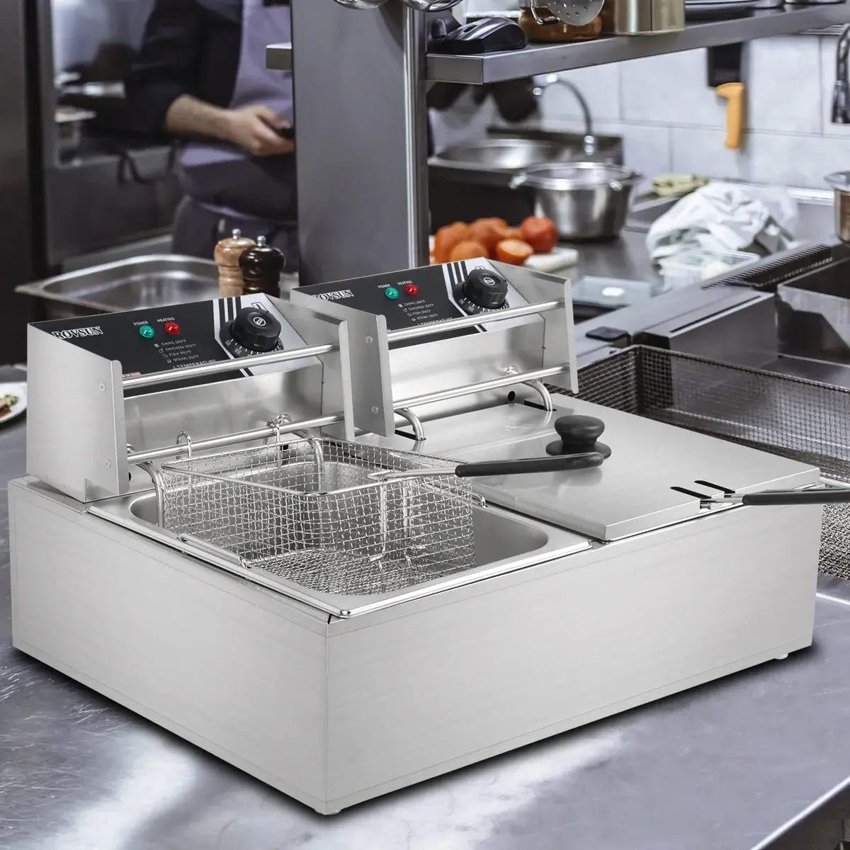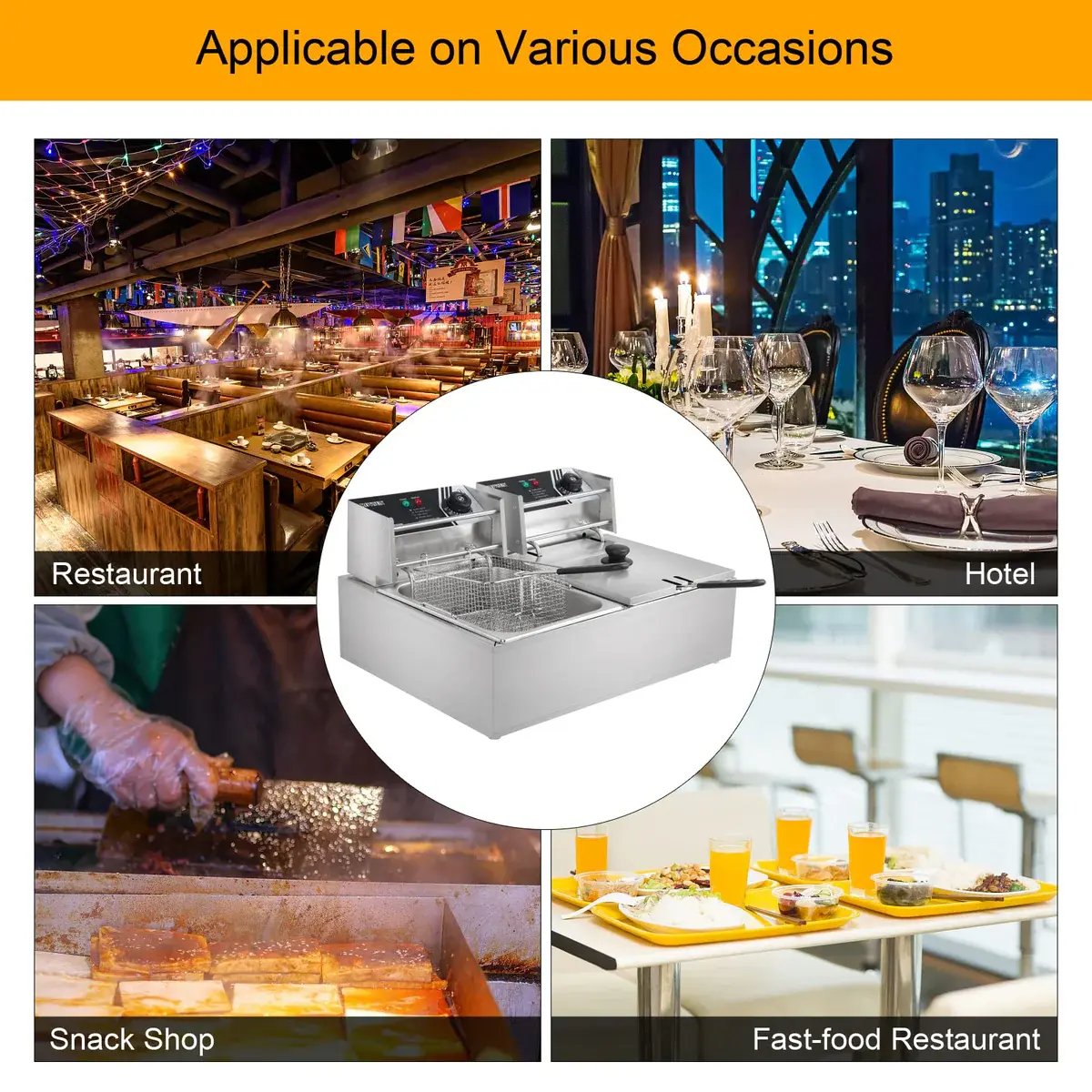 5. Enjoy Healthy Food: The double deep fryer is perfect for commercial use, such as restaurants, supermarkets, fast food stands, snack bars, parties, etc. Suitable for buffalo wings, chicken, dumplings, egg rolls, shrimp rolls, mozzarella sticks, jalapeno poppers, etc.