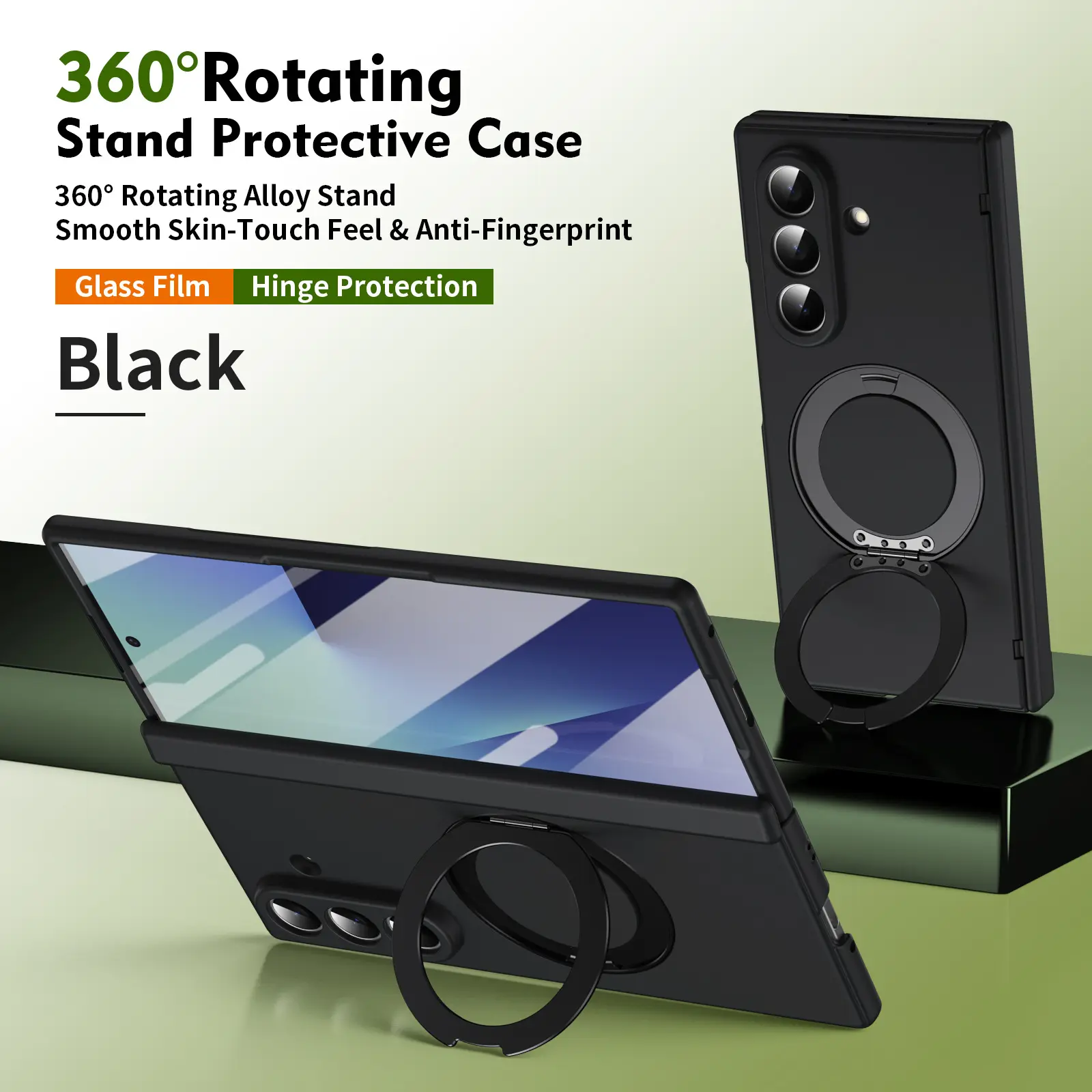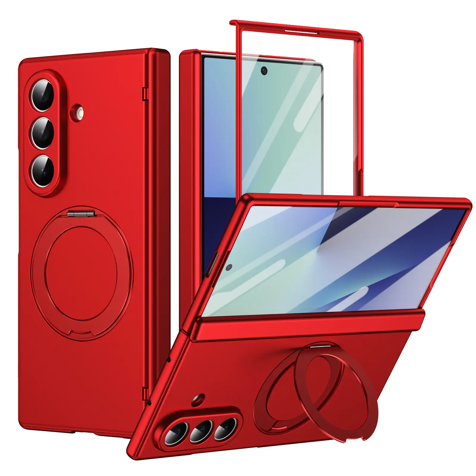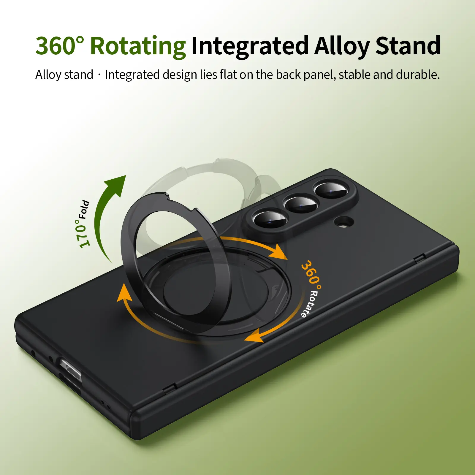 360° Rotating Integrated Alloy Stand: Built-in durable alloy ring stand supports 360° full rotation and 170° foldable adjustment, enabling stable horizontal/vertical viewing for videos, calls, or navigation. Folds completely flat when not in use, keeping the case slim and pocket-friendly.