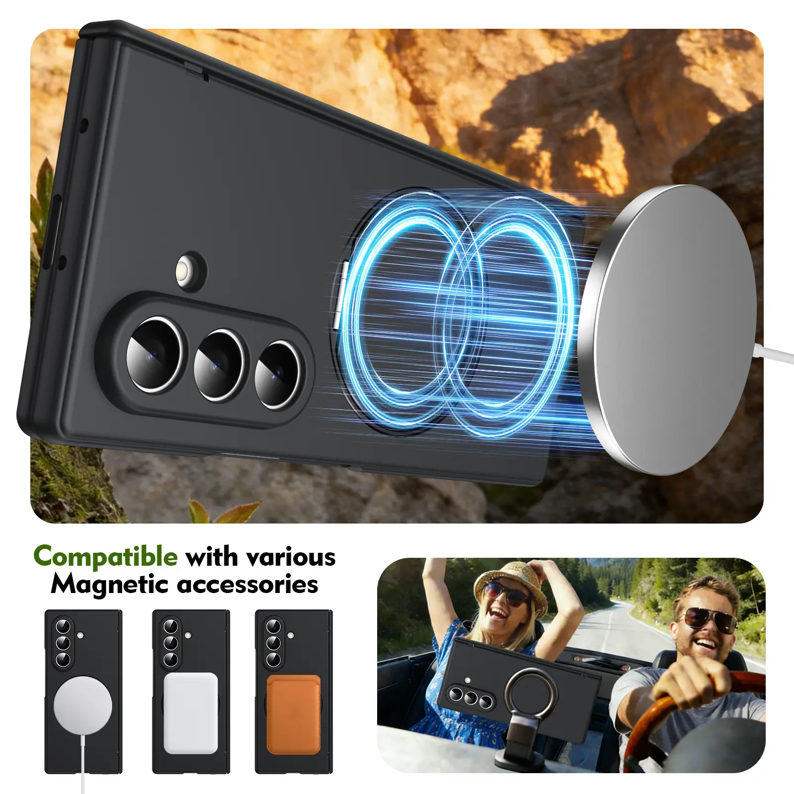 Built-in Strong MagSafe Compatibility: Precision-aligned magnetic ring delivers powerful adsorption, working seamlessly with MagSafe wireless chargers, car mounts, power banks, and magnetic wallets for fast, stable charging and secure attachment.