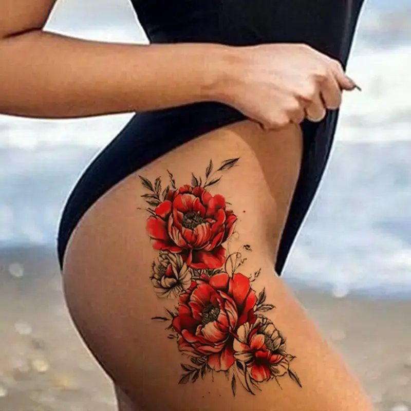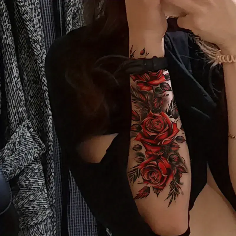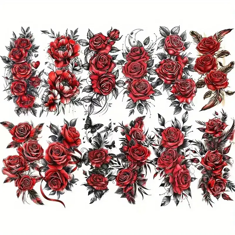 12pcs Temporary Red Rose Tattoo Stickers, Suitable For Arm And Leg Fake Tattoos, Waterproof And Sweat-Proof, Easy To Use, Dancer Chest And Thigh Designs, Very Suitable For Women's Temporary Fake Tattoos