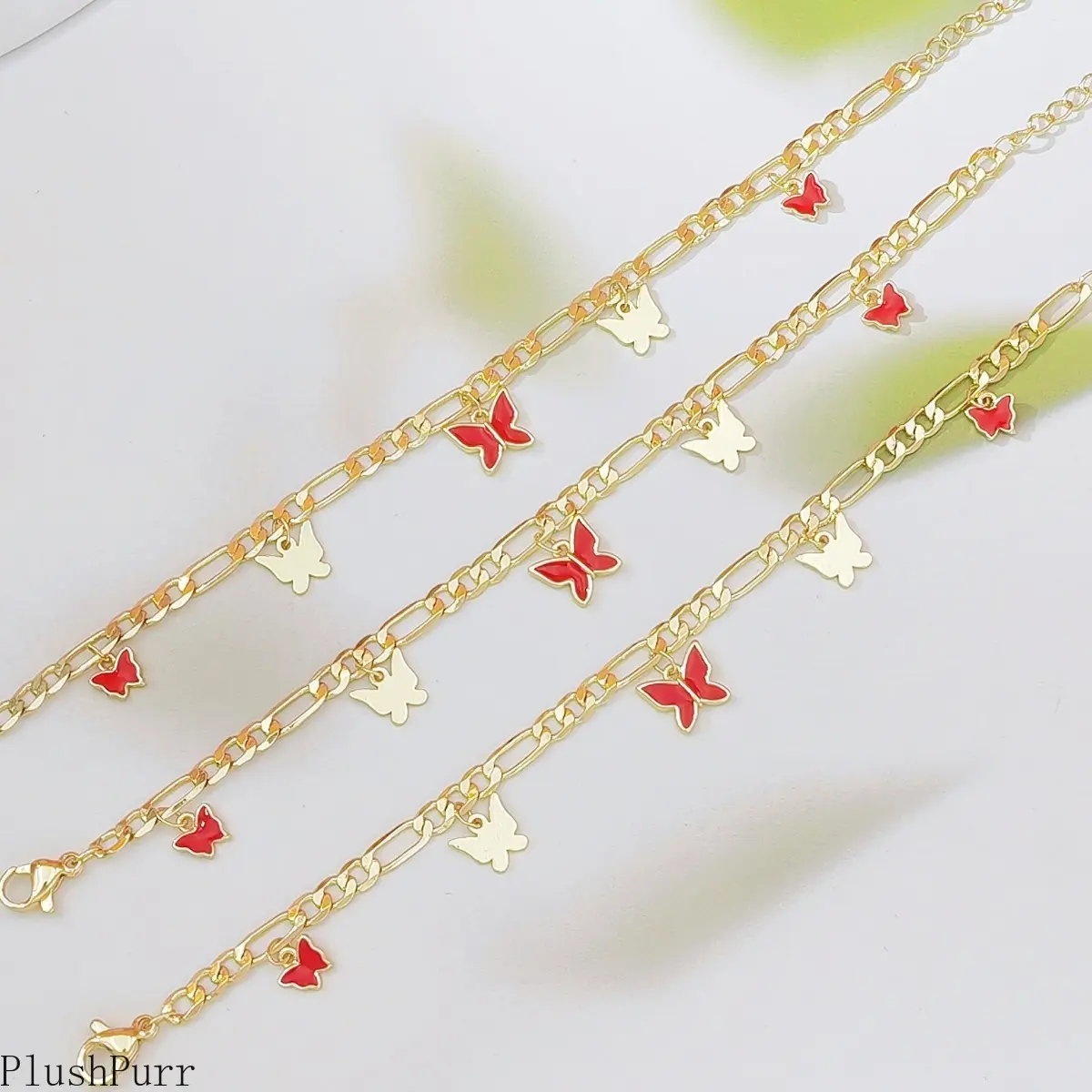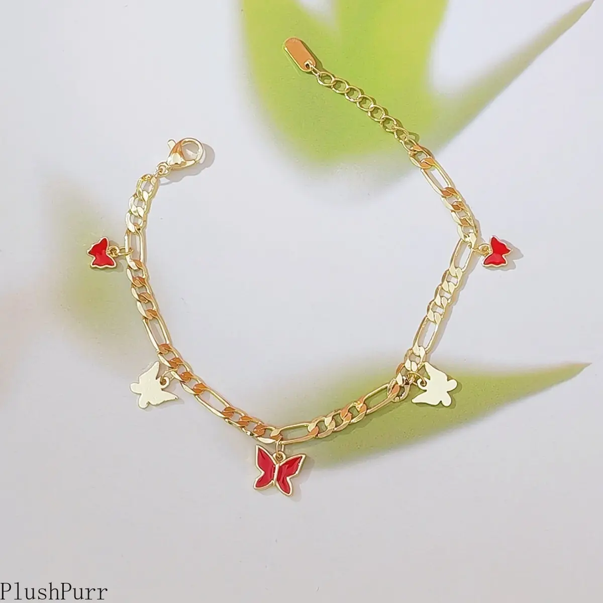 ✨ Elegant Design ✨ This bracelet features a minimalist design with red butterfly pendants. It effortlessly adds sophistication to any outfit. The simple yet stylish look makes it perfect for everyday wear. The bracelet's design is chic and understated, ensuring it remains a favorite for all occasions.