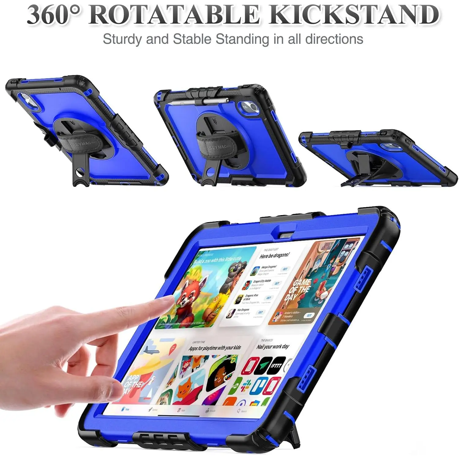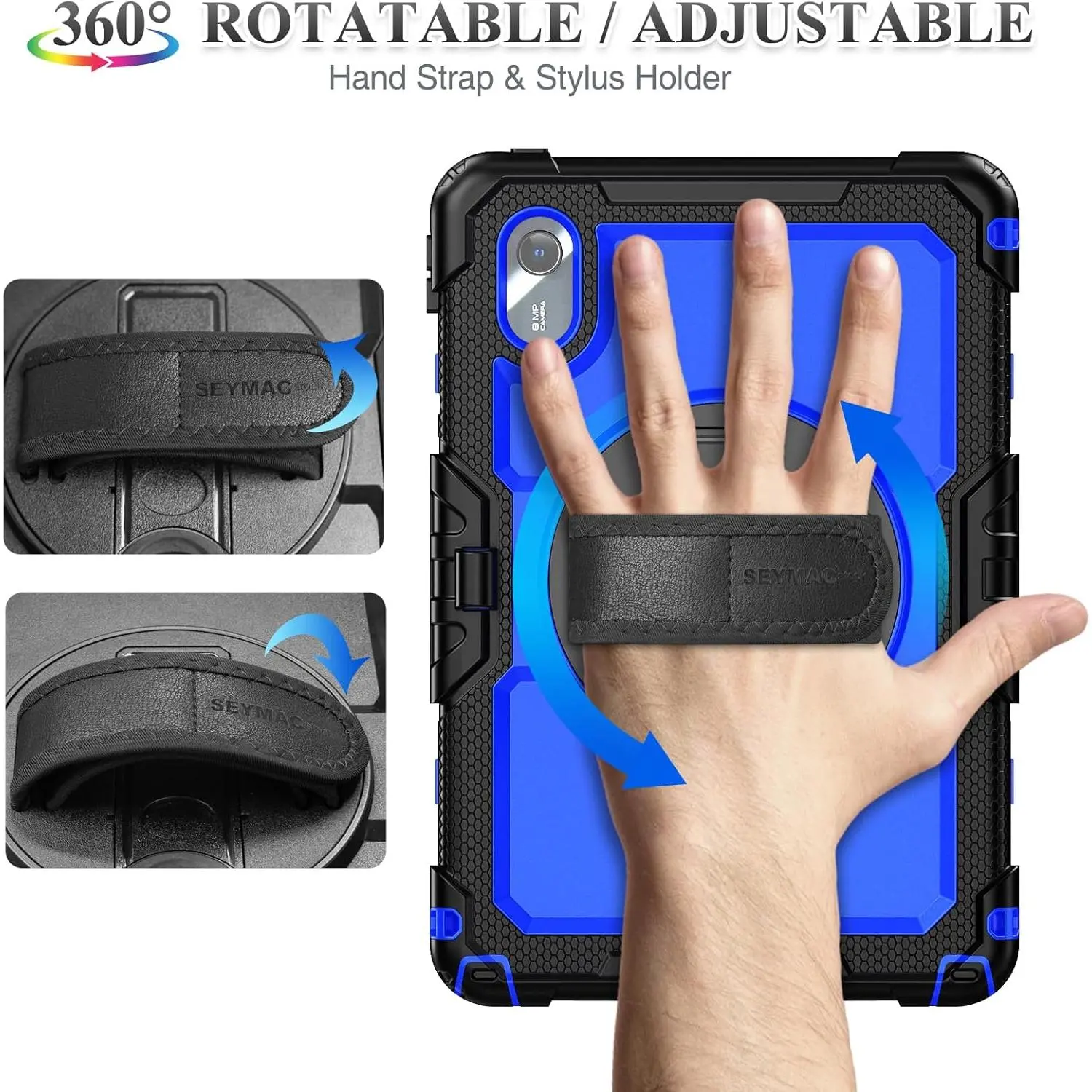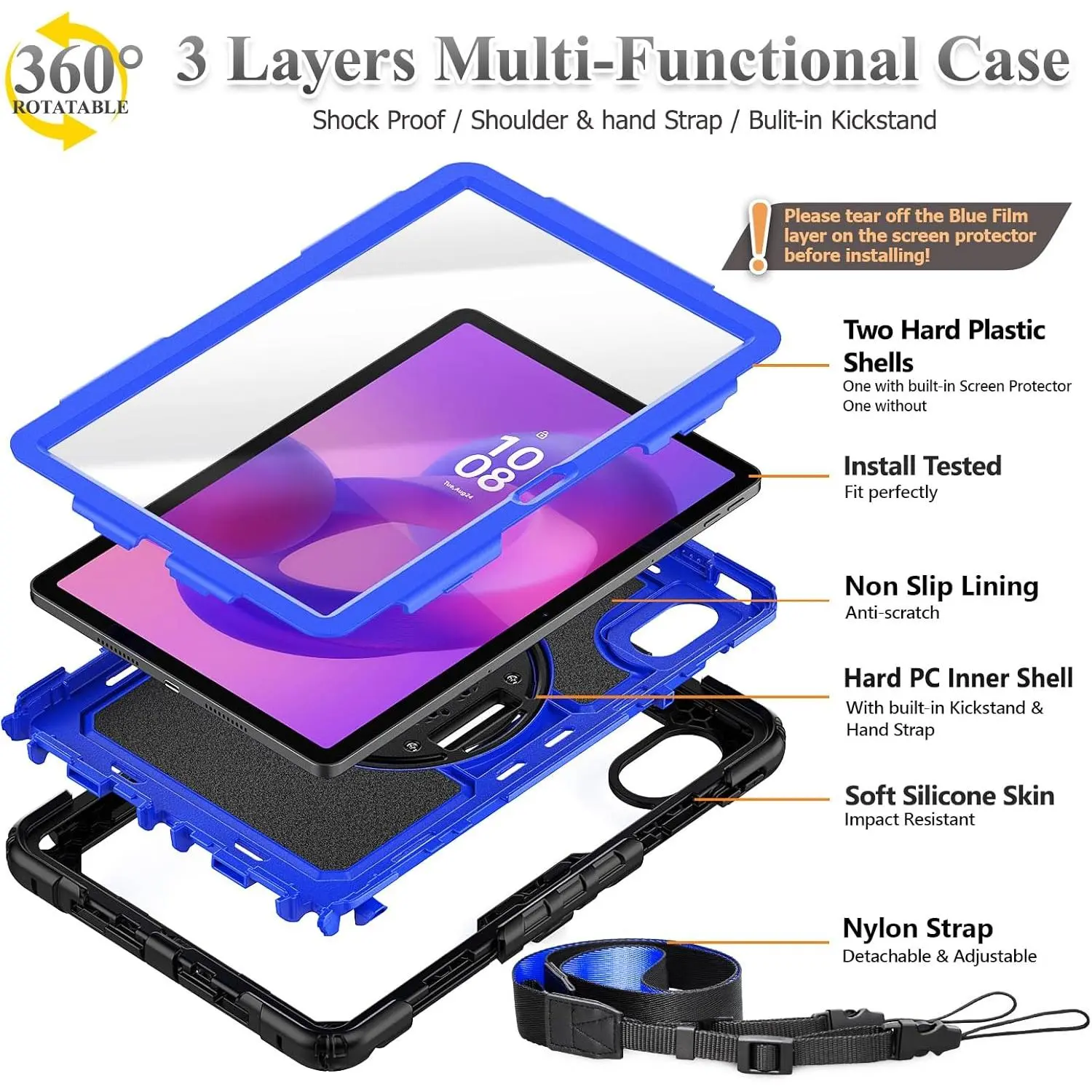 360 degree Rotating Stand + Hand Strap & Portable Shoulder Strap: 360 Degree rotating Kickstand provides multi-angle viewing, with soft handle strap, provide protection and convenience when use.With Shoulder Strap to hang to make hands be free-of