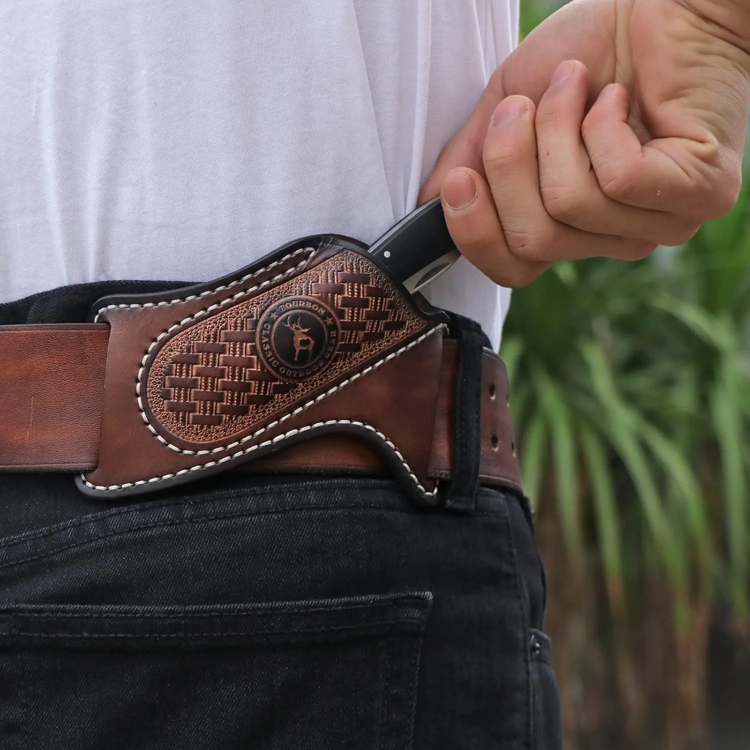Tourbon folding knife sheath made of thick genuine leather, great stitching, tough and stylish.