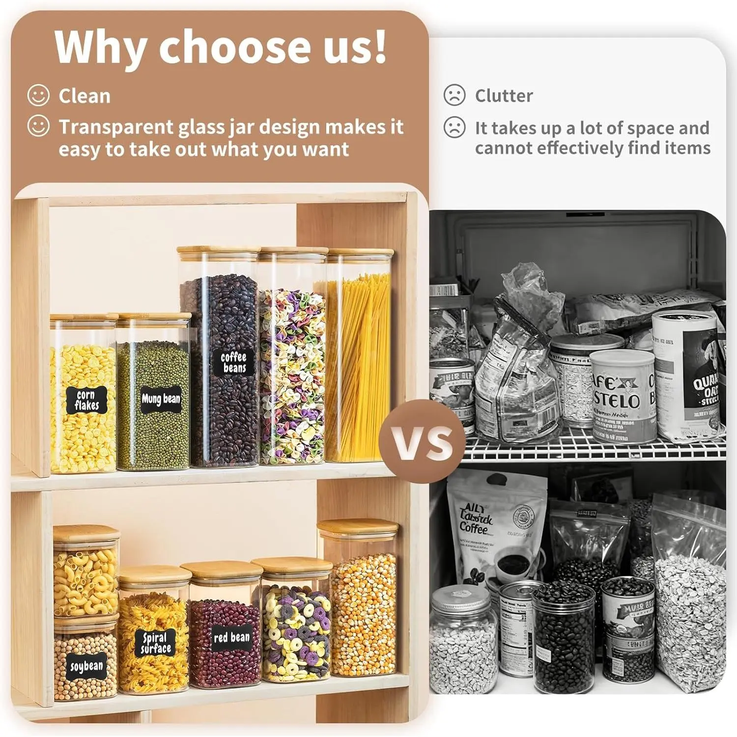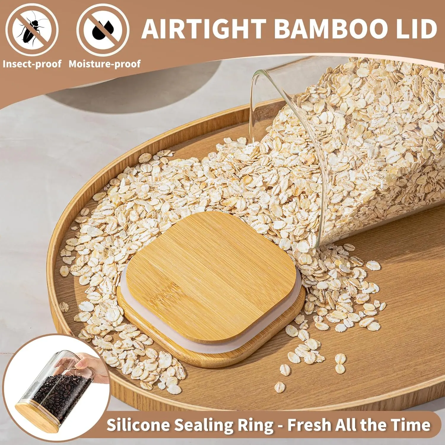 AIRTIGHT FRESHNESS YOU CAN TRUST: Unlike ordinary lids, our storage jars dual-seal bamboo design (solid natural bamboo top + thick food-grade silicone ring), locks out air and moisture, keeping ingredients fresher for longer.Say goodbye to soggy snacks and stale coffee- keeps flavors and textures perfectly preserved