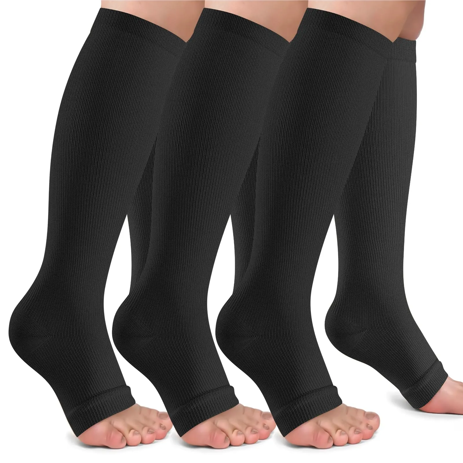 Open Toe Compression Socks Women & Men-3 Pairs 20-30 mmHg Knee High Stockings for Circulation Support