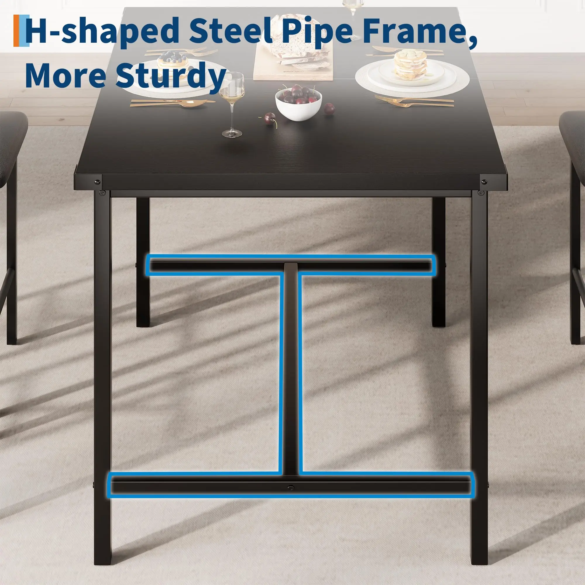 · 【Upgraded H-Frame Structure】Built with a strong steel H-frame and durable metal legs, this dining table set for 2 delivers excellent stability and strength. The sturdy wooden tabletop and robust metal framework are designed for long-lasting performance. The dining table can accommodate up to 300 lbs, and each bar chair supports up to 400 lbs, ensuring a safe and sturdy dining environment.