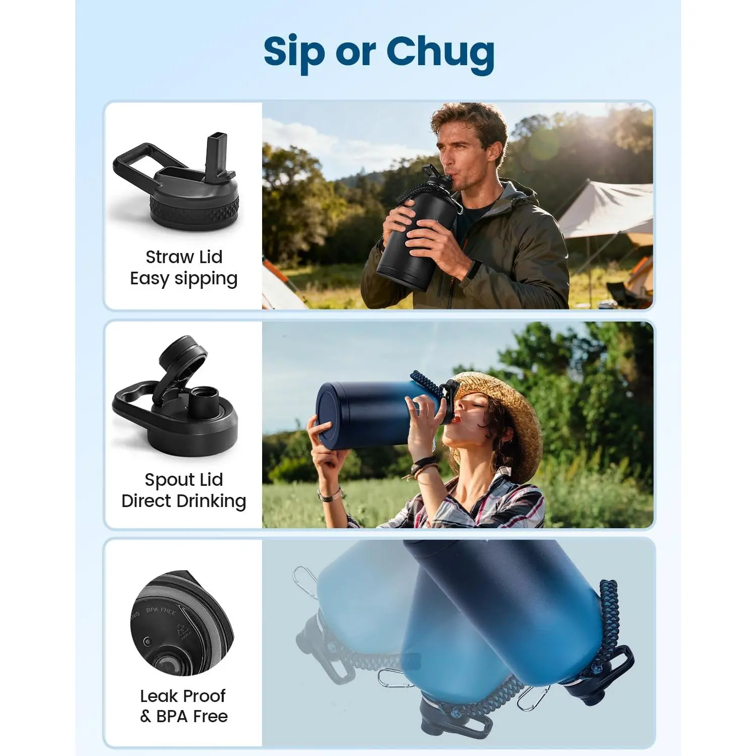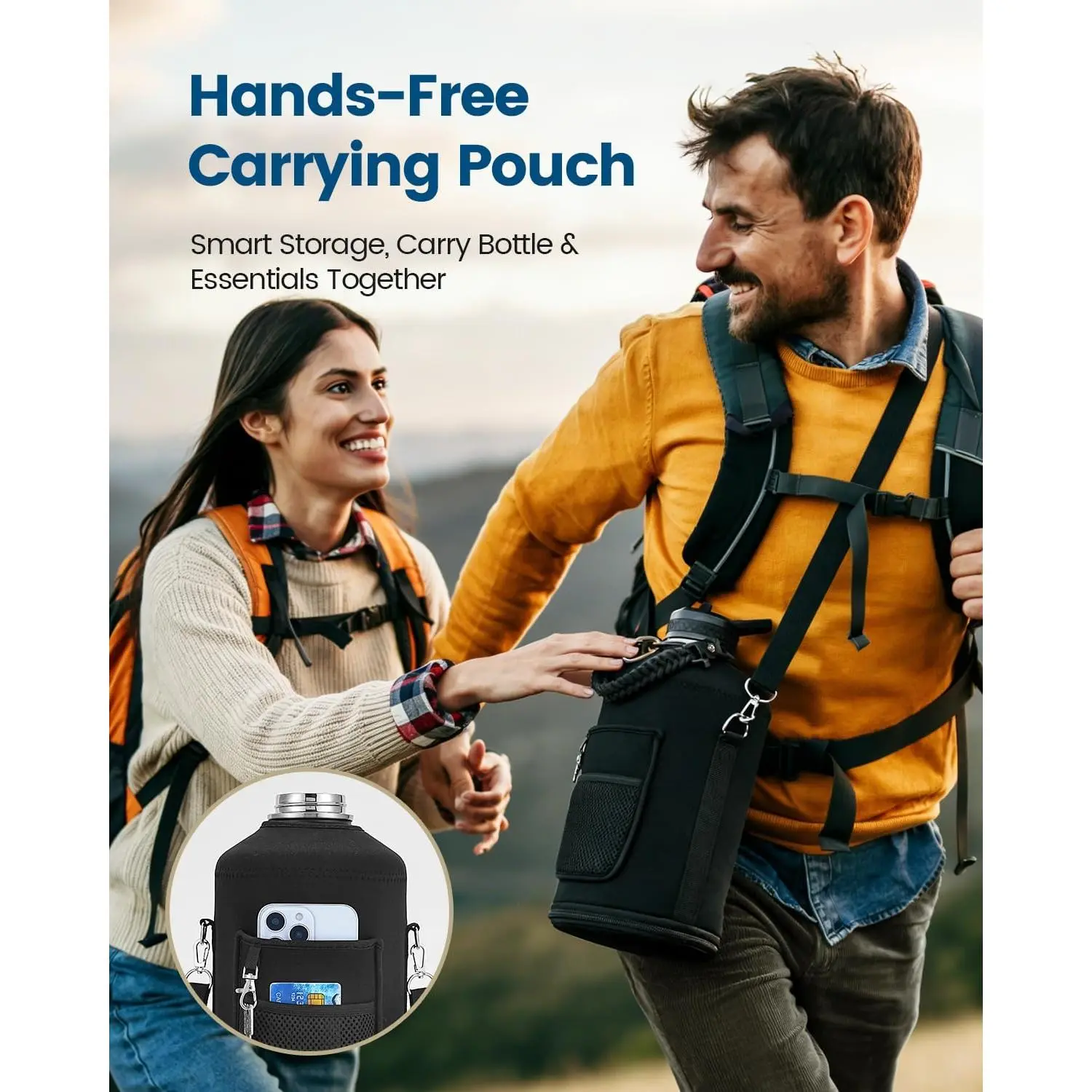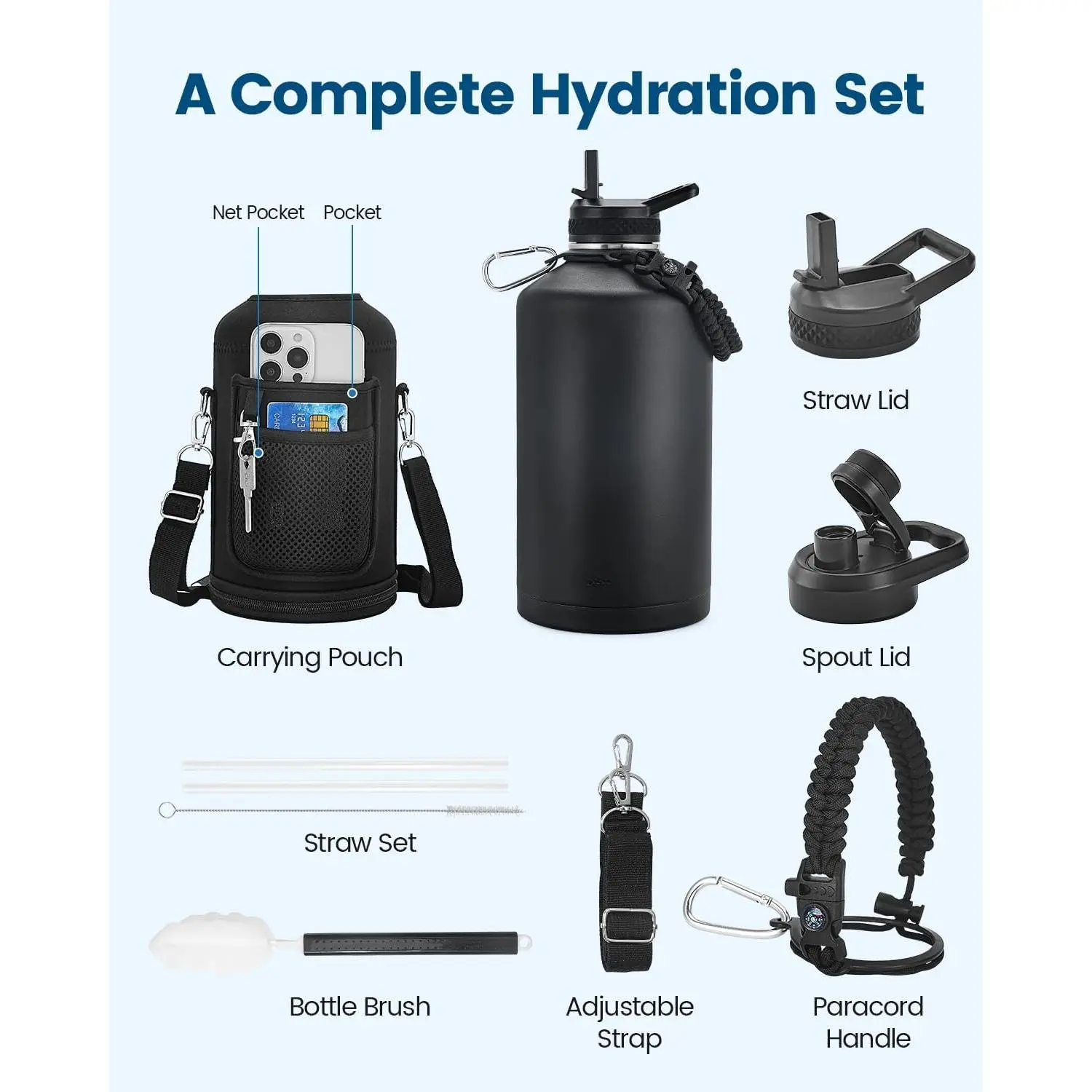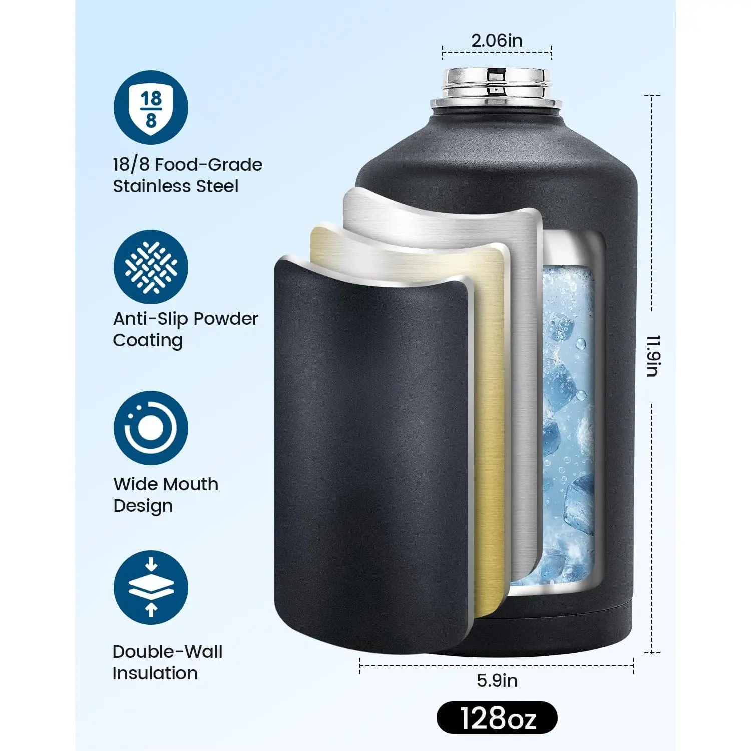 1 Gallon Water Bottle Insulated, Vacuum Stainless Steel Water Bottle Keep Cold 48Hrs, 128 oz Large Gallon Water Jug for Travel, Sport, Gym, Hiking with Carrier Bag, Black