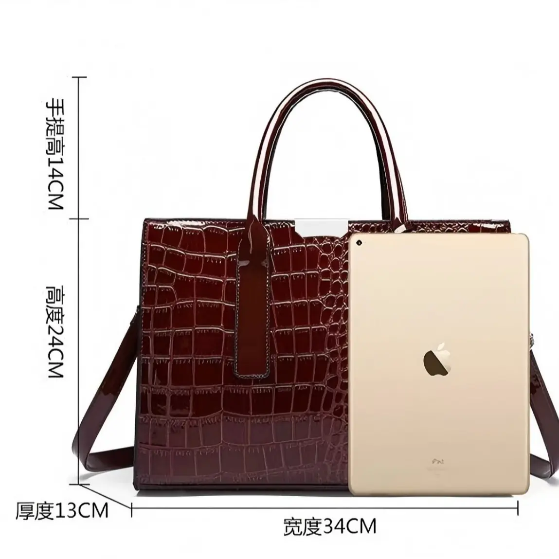 Carefully selected high-gloss leather material paired with embossed crocodile texture creates a deep, glossy shine reminiscent of obsidian, exuding a subtle luxury and premium feel. Glossy finish not only enhances the bag’s refinement but also makes it easy to maintain, resists scratches and wear, effortlessly handles daily commutes, easily adapts to various scenarios like work, dates, and travel, serving as a finishing touch that elevates your outfit’s vibe.