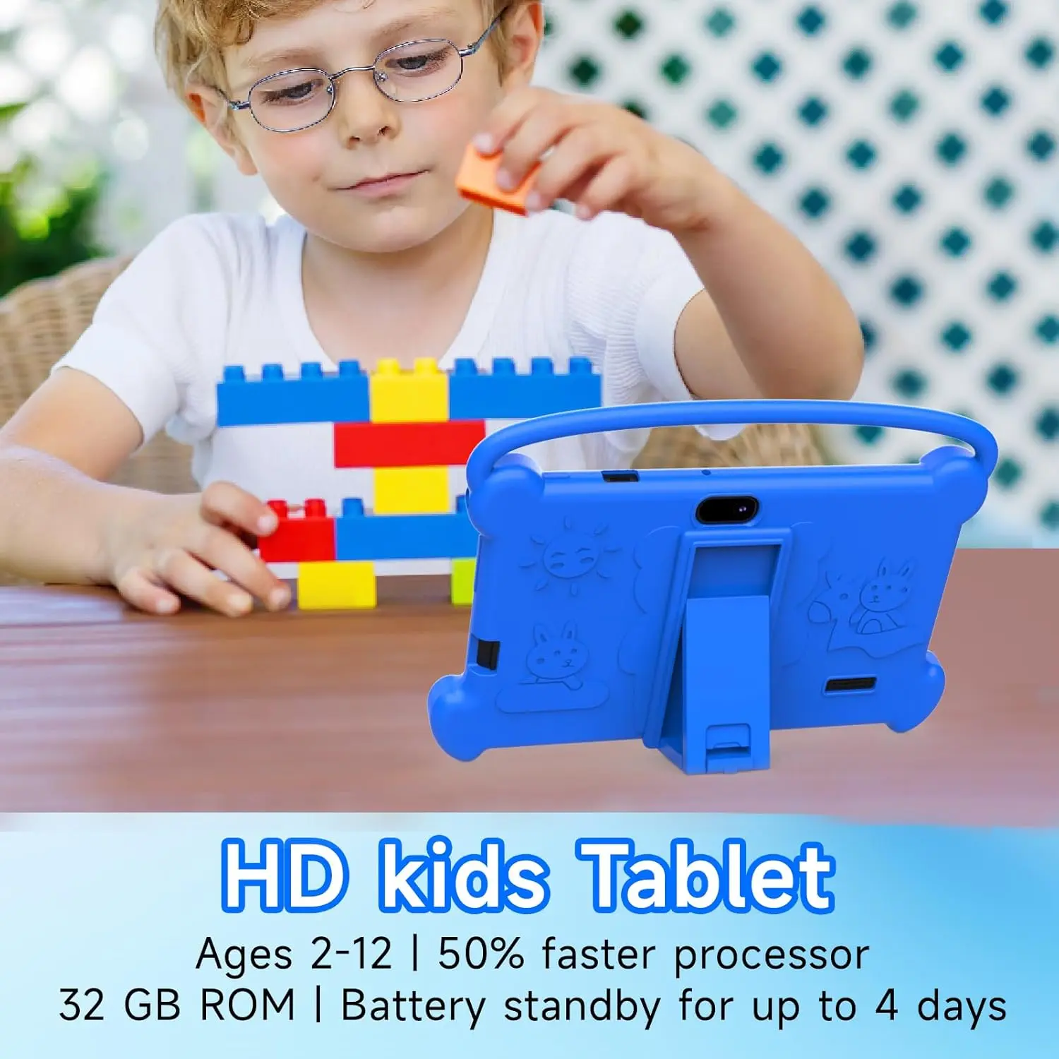 [Ideal Gift Choice]This Kids tablet with slim and compact body, with soft and lightweight protective case, more durable, it can protect your tablet when drops. And the adjustable plastic stand can stand tablet stable, you not need to hold the tablet all the time. This tablet PC can bring a lot of fun and knowledge for your kids. learning while playing. The toddler tablet is an ideal gift for birthday, Christmas, holiday season