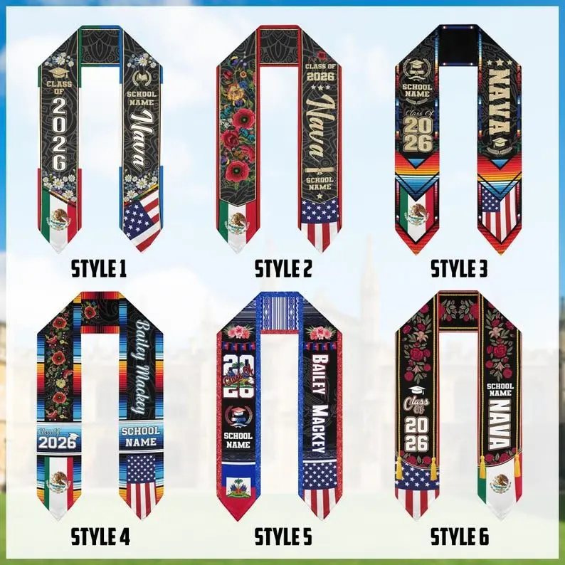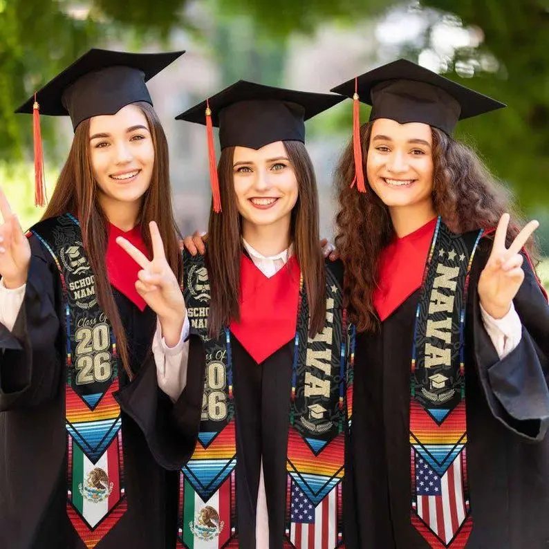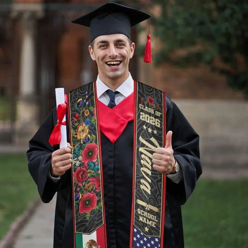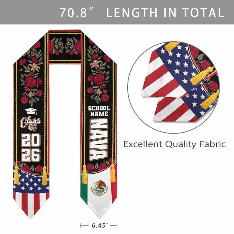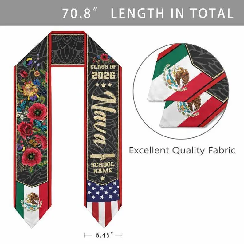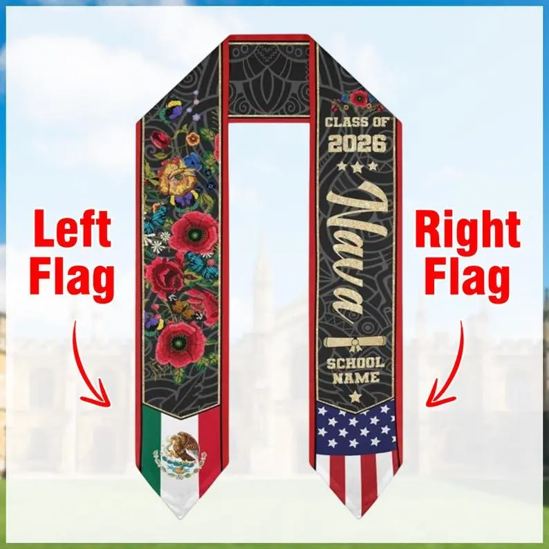 5. Custom Mexican Graduation Stole: Two Flag Design, Class of 2026 Graduation Stole