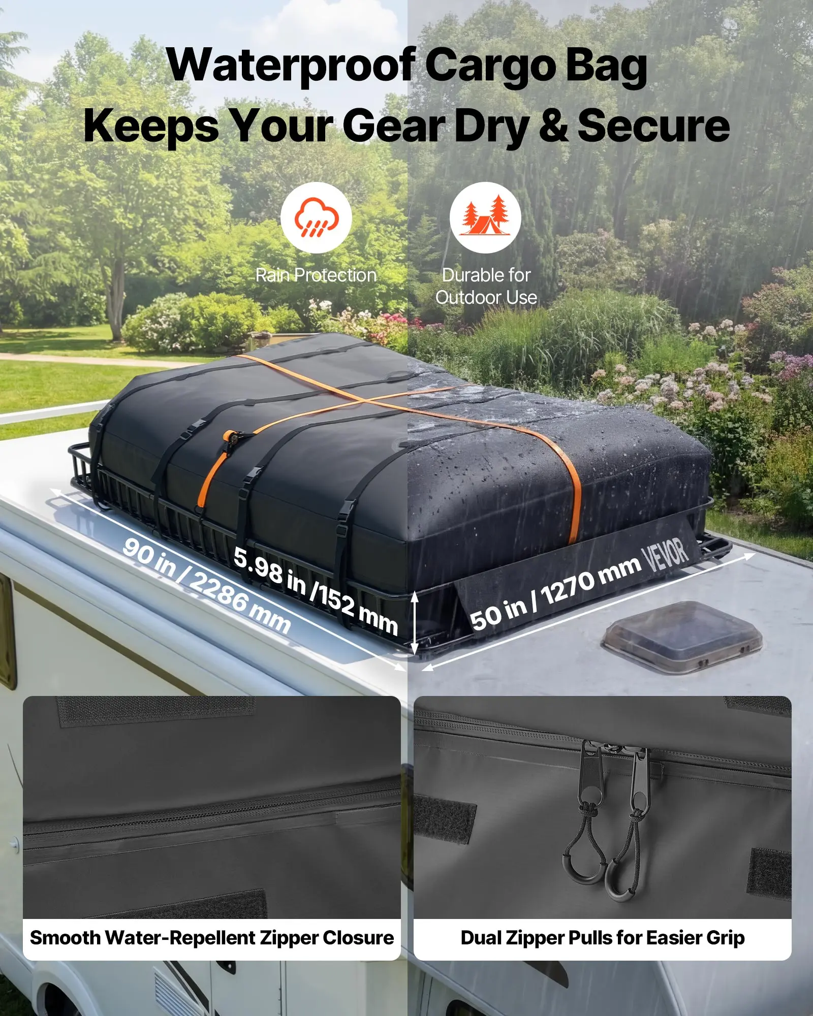 All-Weather Rust Protection: This car roof rack basket features an e-coating finish that resists rust and corrosion, ensuring long-lasting performance in rain, snow, and outdoor conditions