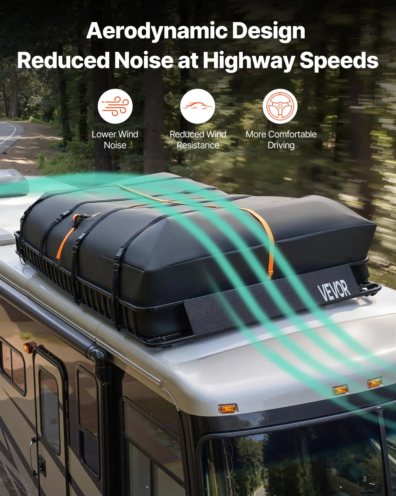 Quiet and Stable Ride: The front wind deflector on this roof basket cargo carrier guides airflow over the cargo, reducing turbulence and wind noise for a smooth and quiet drive at highway speeds