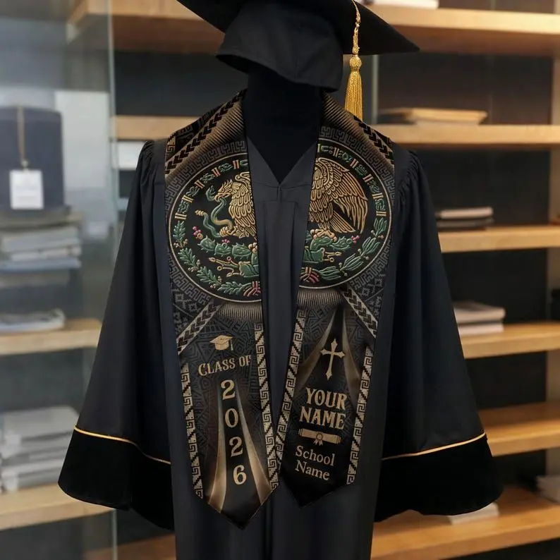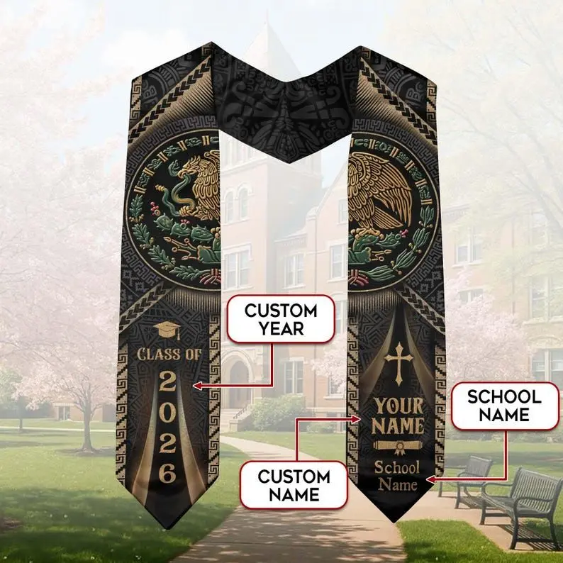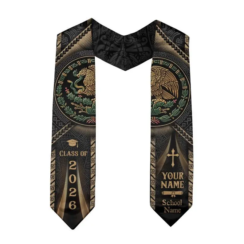 Personalized Mexican Graduation Stole 2026, Mexican Flag Graduation Sash, Mexico Pattern Stole, Custom Name & School Sash Senior Grad Gift Graduation Stole