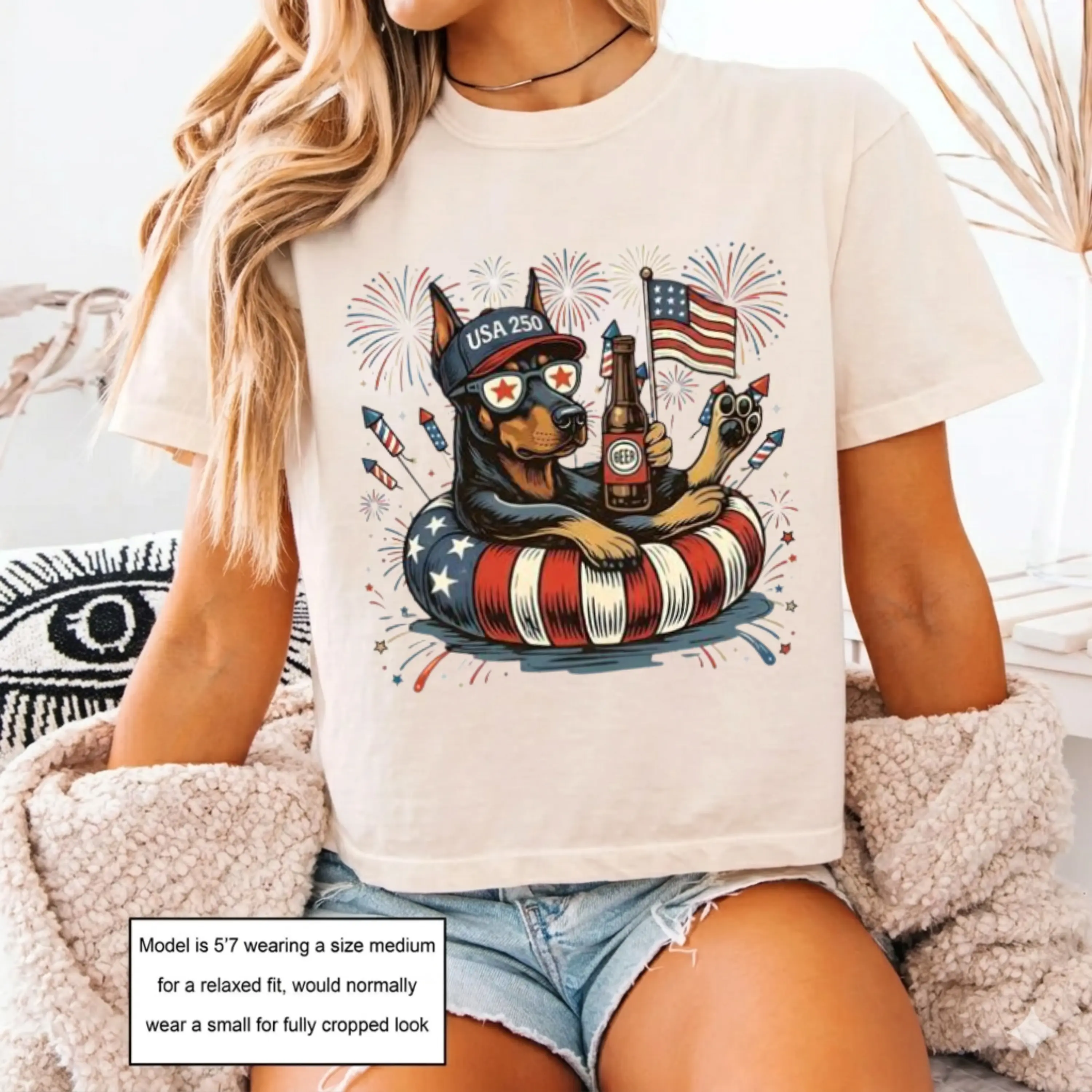 Comfort Colors Boxy Tee Patriotic Doberman Dog Graphic Tee Cropped Shirt Womens USA Flag Dog T-Shirt 4th of July Shirt Dog Lover Gift Vintage Cute Tee