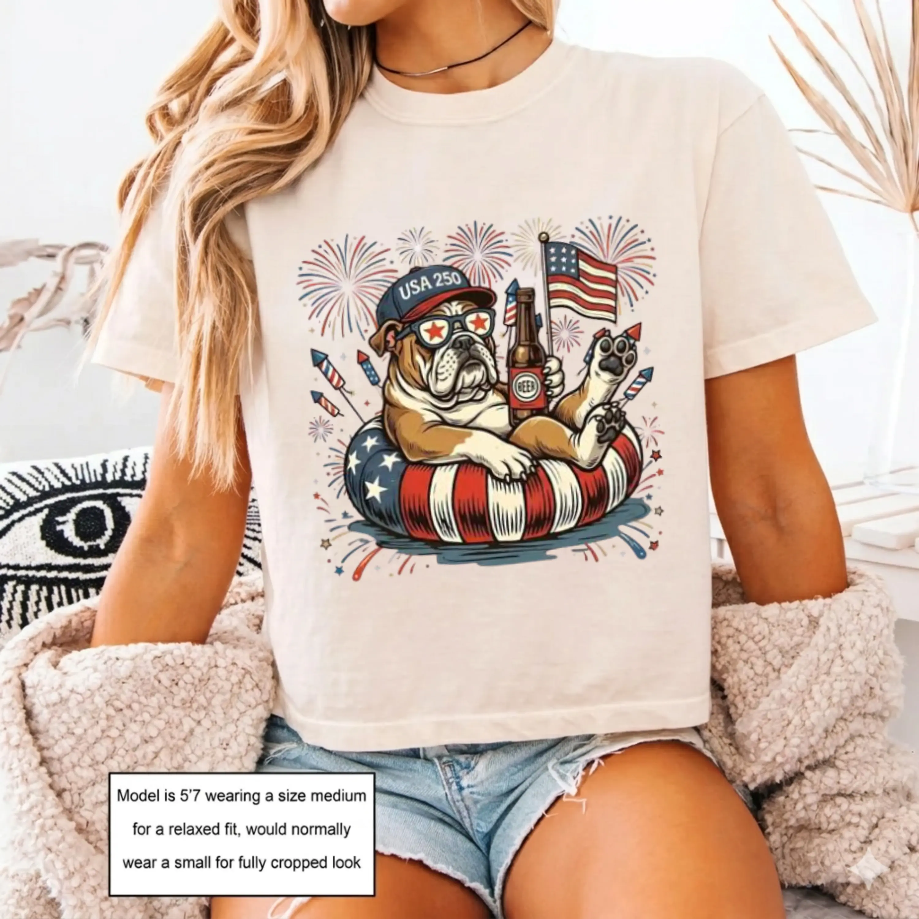 Comfort Colors Boxy Tee Patriotic Bulldog Graphic Tee Cropped Shirt Womens USA Dog T-Shirt 4th of July Shirt Dog Lover Gift Vintage Cute Tee