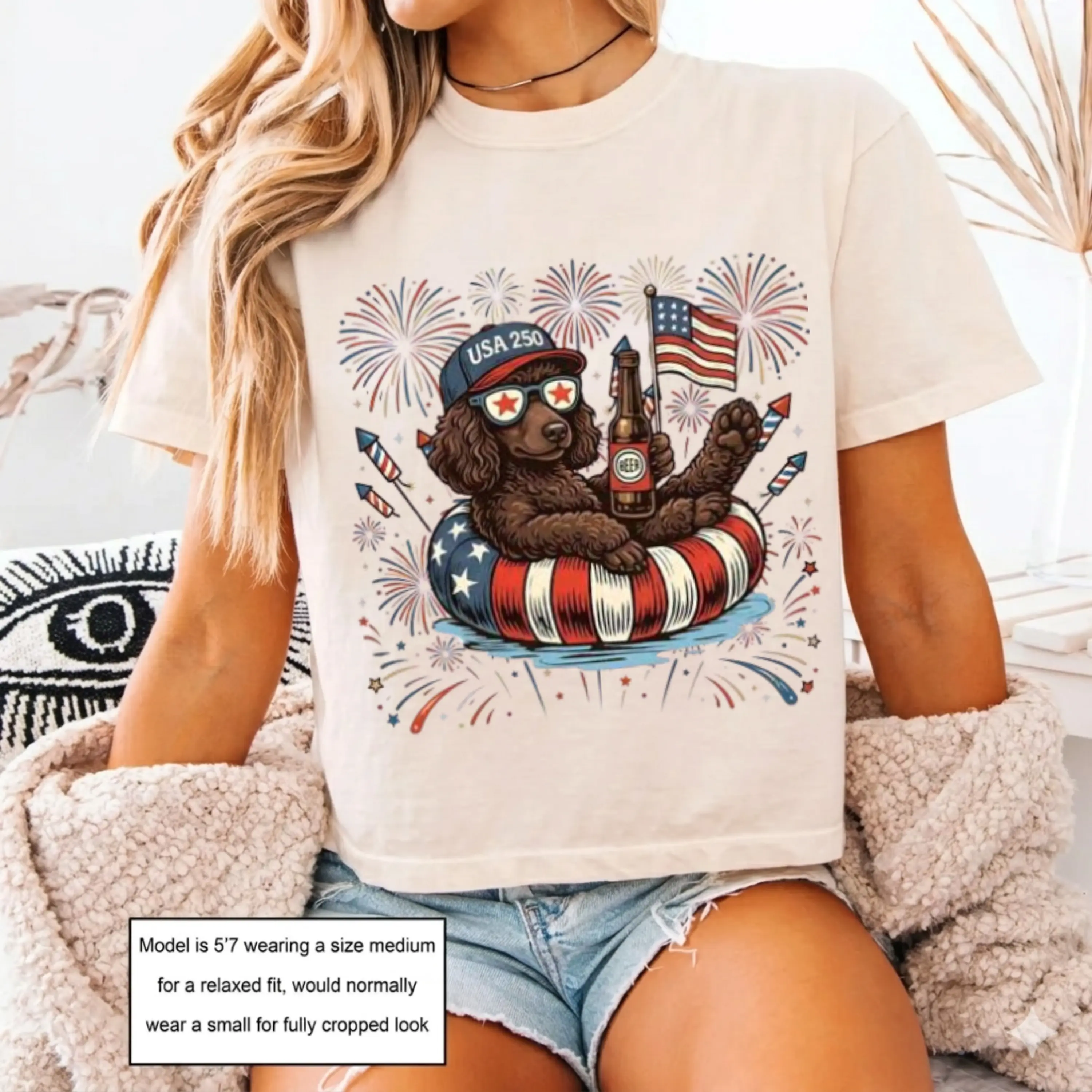 Comfort Colors Boxy Tee Poodle Dog Graphic Tee Cropped Shirt Womens USA Flag Puppy Shirt 4th of July Vintage 90s Aesthetic Dog Lover Gift