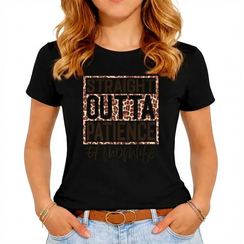 [100% Cotton] Straight Outta Patience T Shirt, Mom Life Leopard Tops, Mom'S Country Shirt, Country Mama Tee, Mother'S Day Shirt, Mama Shirt Western, Gift For Mom T-Shirt For Men And Women