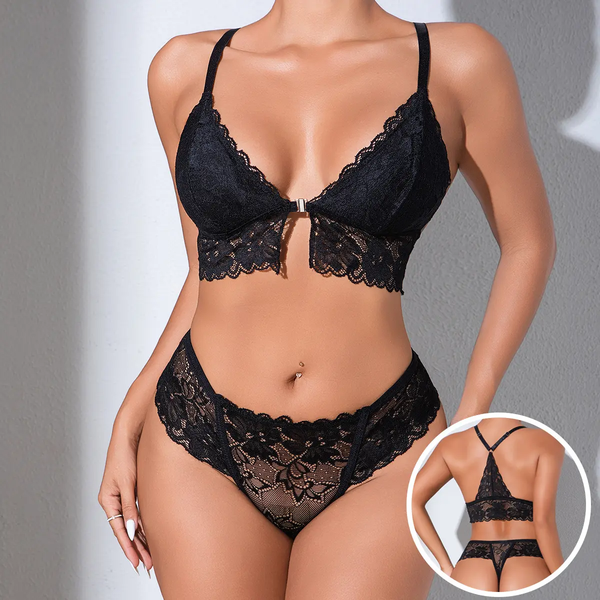 Summer new style women's bra set, lace French triangle cup, adjustable thin strap thong