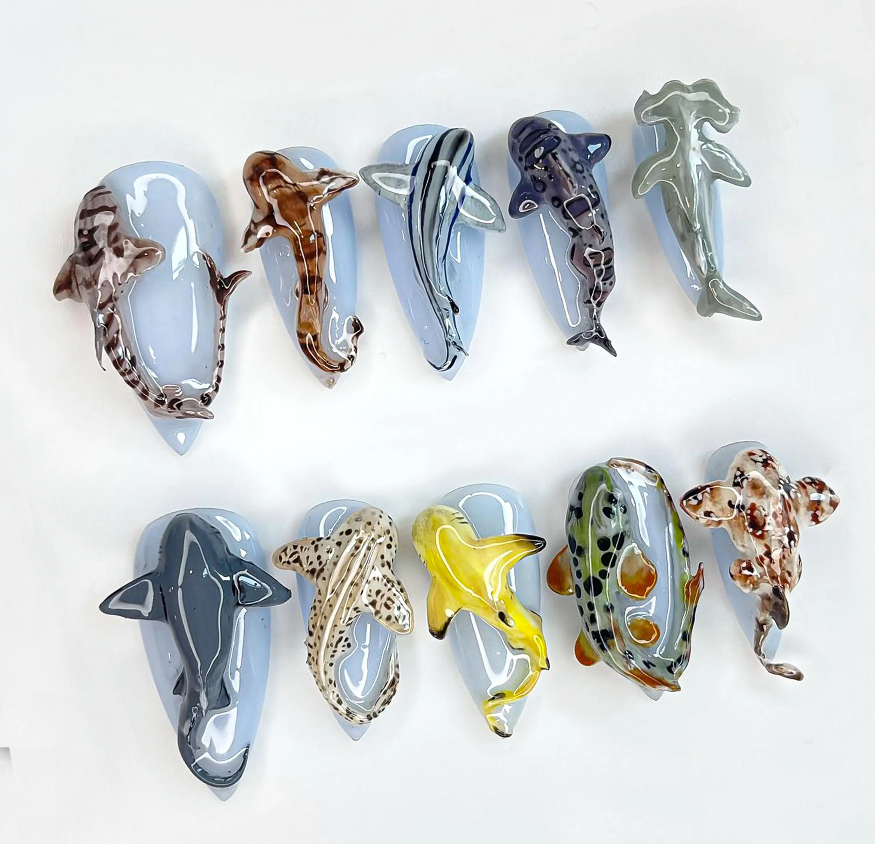 • 10 custom-designed upside-down press-on nails – Exclusive, trendy charm details, handcrafted for a statement look.