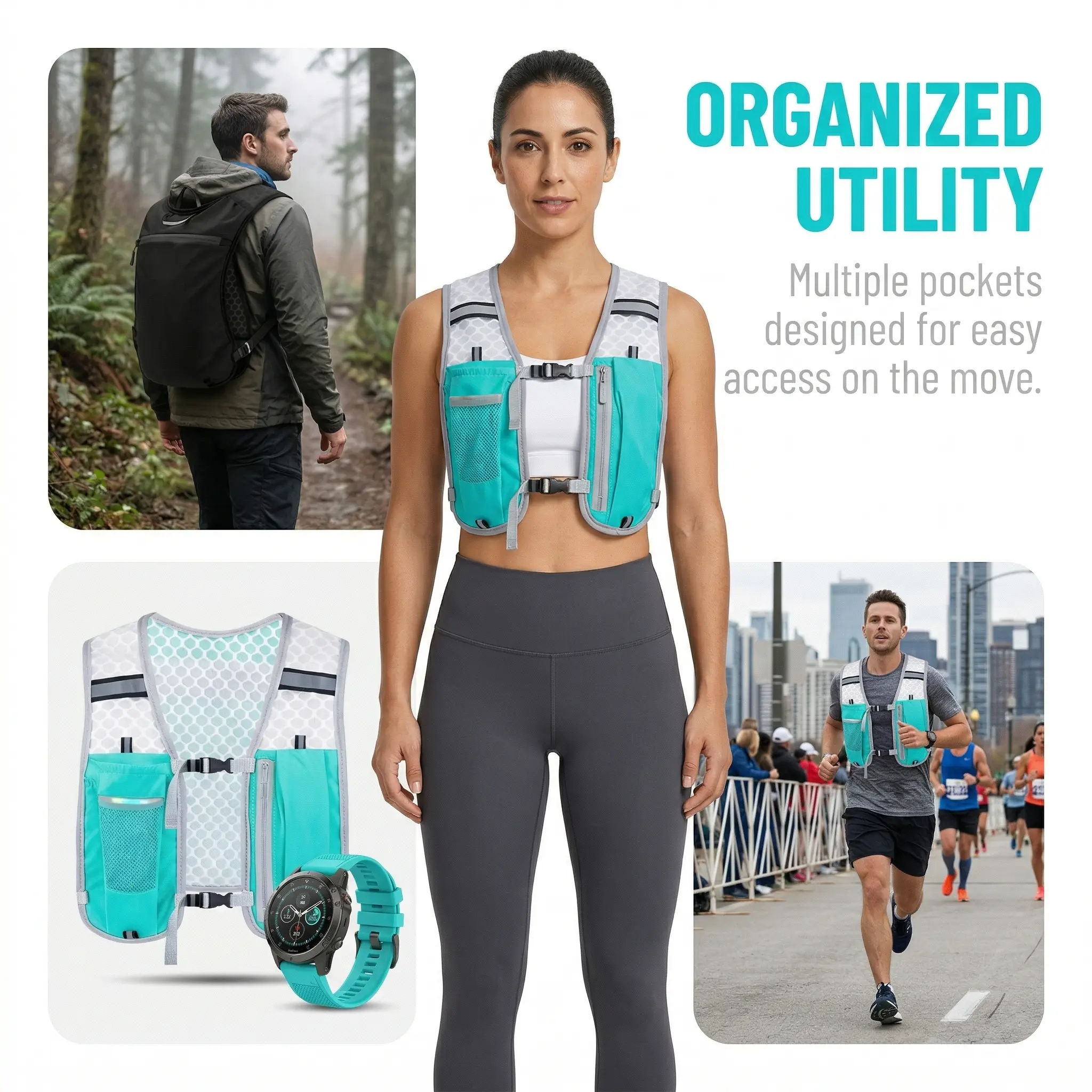 Experience ultimate comfort on your longest runs with our Lightweight Hydration Vest. Engineered for stability and breathability, this vest utilizes an advanced 3D mesh fabric that keeps you cool even during high-intensity workouts. The ergonomic wrap-around design ensures a snug, "no-bounce" fit that moves with your body, reducing friction and fatigue. Featuring multiple easy-access pockets, it’s designed to carry your water flasks, phone, and nutrition gels securely so you can focus on the trail ahead. Whether you're training for your first marathon or heading to a weekend music festival, this vest provides the hydration support and storage you need.