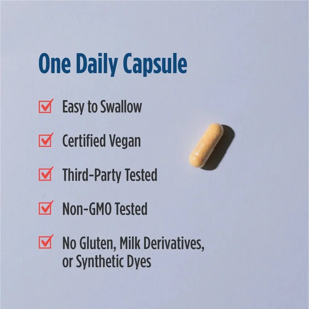 ONCE-DAILY SUPPLEMENT - This once-daily, vegan capsule delivers thiamine, riboflavin, niacin, vitamin B6, folate, biotin, vitamin B12 as methylcobalamin, and pantothenic acid.