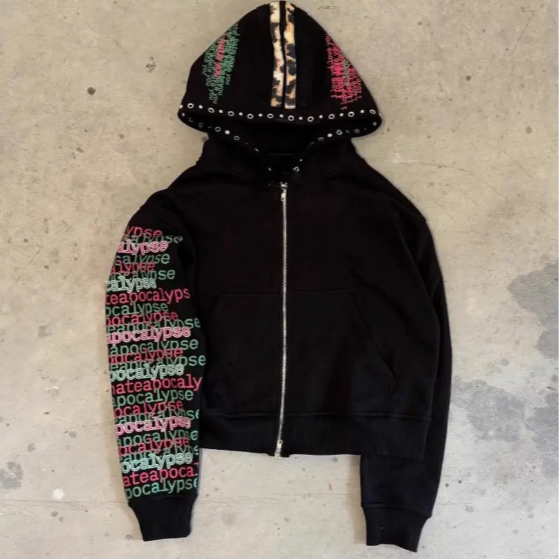 Y2K Leopard Zip Up Hoodie Women Oversized Streetwear Harajuku Cropped Graphic Ja All Oversized Christmas Halloween Thanksgiving Day Menswear Sweatshirts Tops Pullover Long Sleeve Casual Motocross