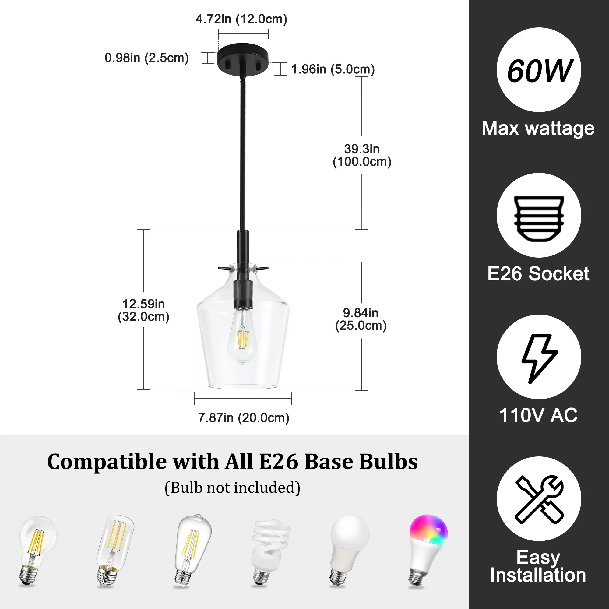 Equipped with a durable metal pole that can be adjusted from 8 inches to 39 inches, this pendant light fits in kitchens, dining rooms, bedrooms, and hallways with different ceiling heights.