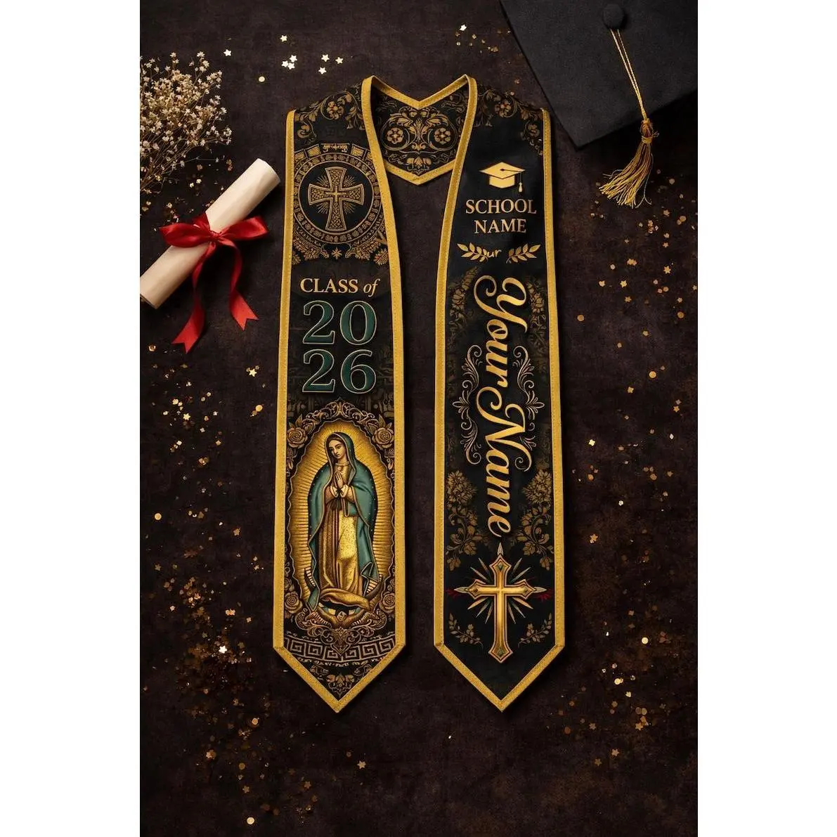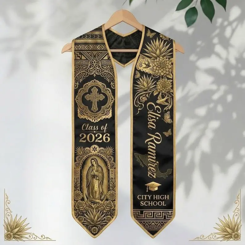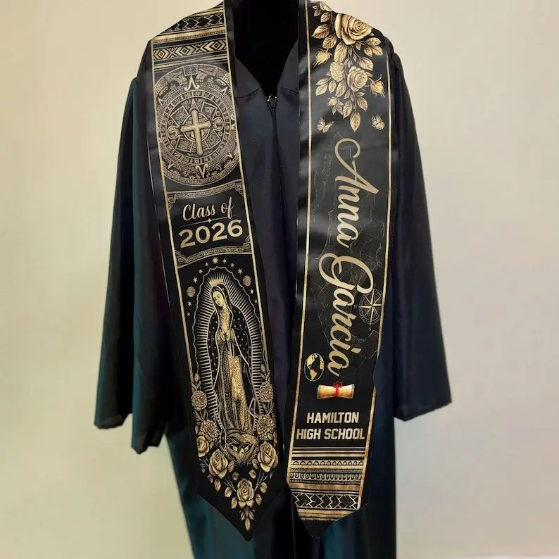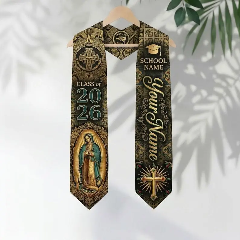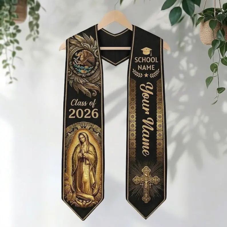 Mexican Catholic Graduation Stole, Personalized Virgen de Guadalupe Grad Sash Class of 2026 Graduation Stole