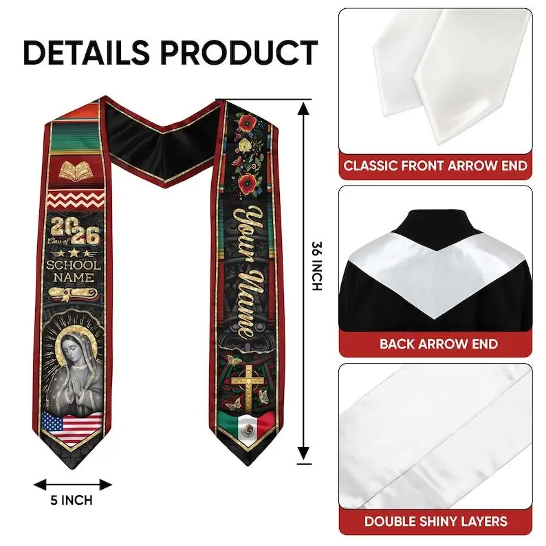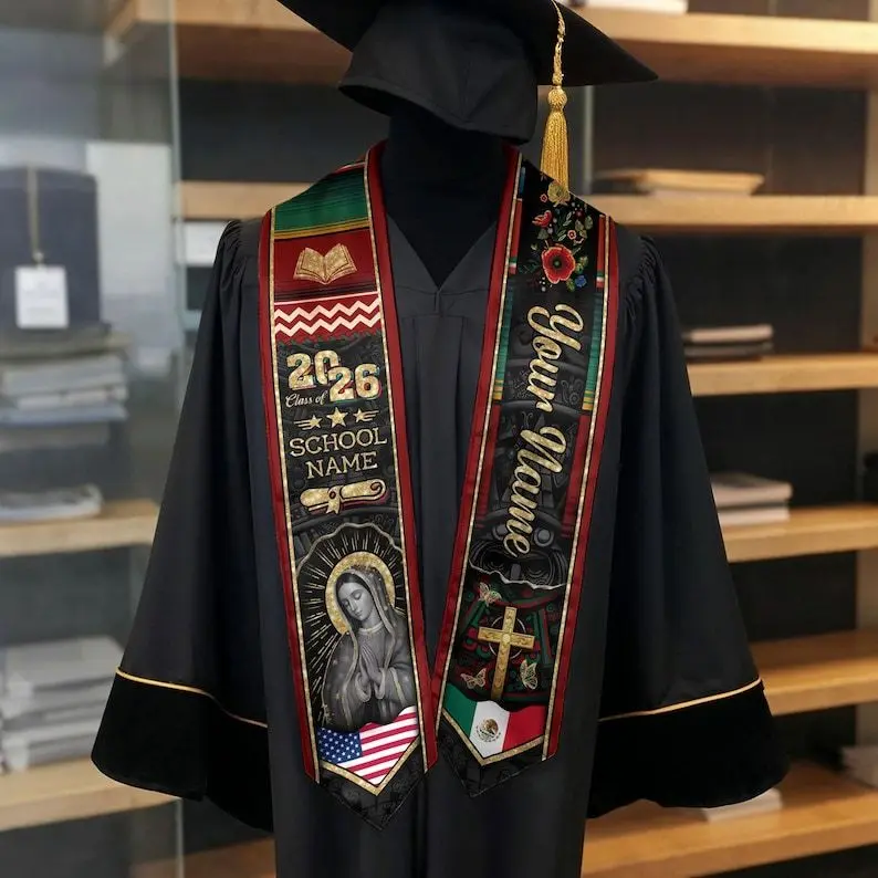 Crafted from high-quality, lightweight 100% polyester, this stole features a smooth finish that makes colors pop and ensures a comfortable fit throughout the ceremony. The all-over print capability allows for edge-to-edge customization, making it a unique keepsake for preschool graduations, high school commencements, or college degrees.