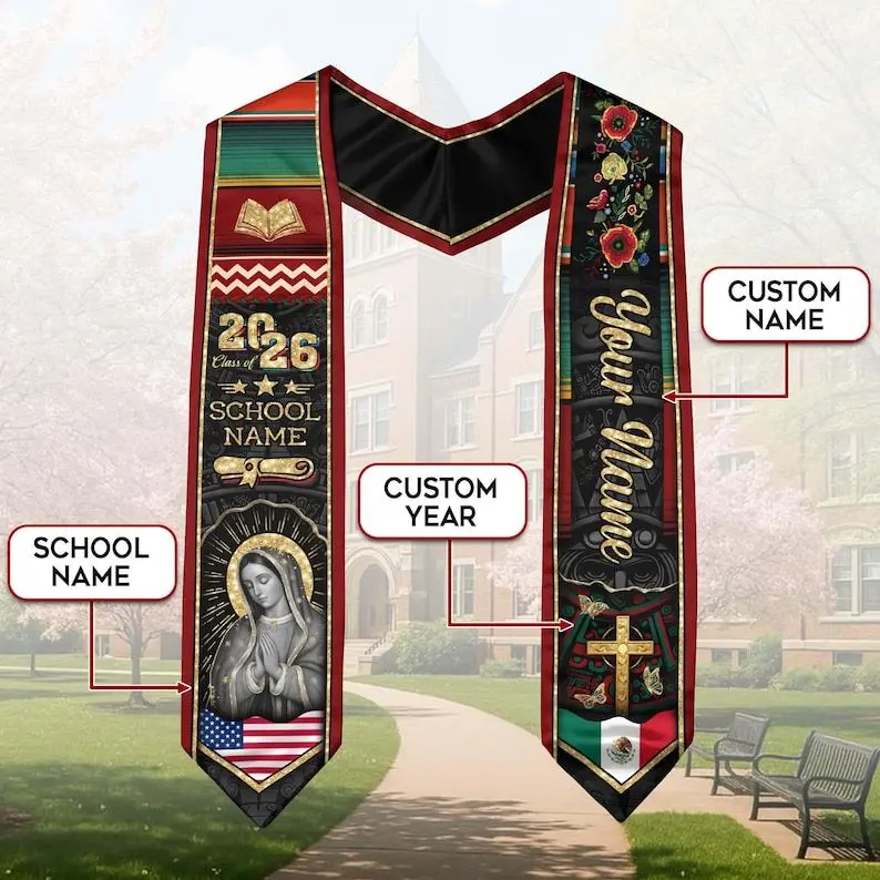 Custom Name & School Mexico Stole 2026, Mexican Flag Graduation Sash, Mexican Graduation Gifts, Personalized Mexican Graduation Sash Graduation Stole