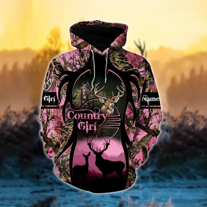 Premium Deerhorn Country Girl Personalized 3D Hoodie & Leggings Set – Style 1 Camo Hunting Outfit, Custom Name Gift for Women