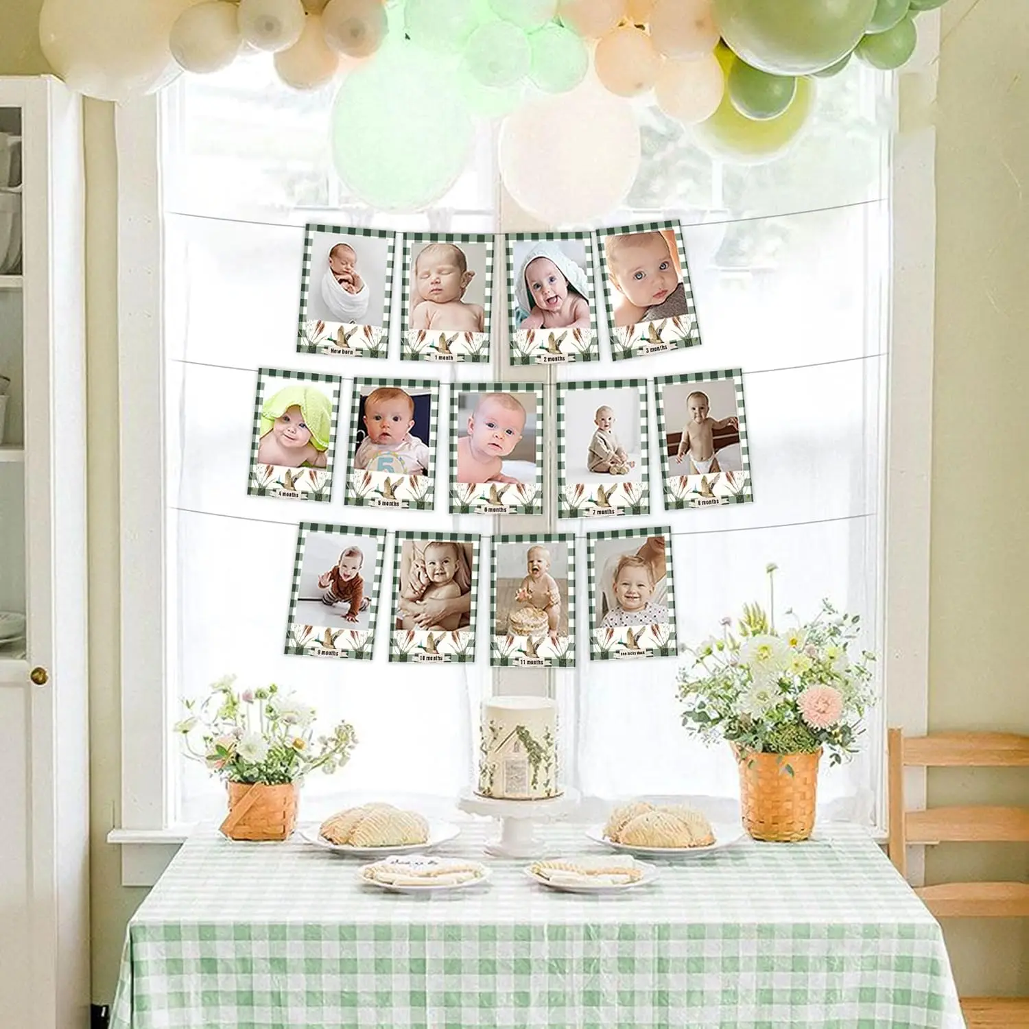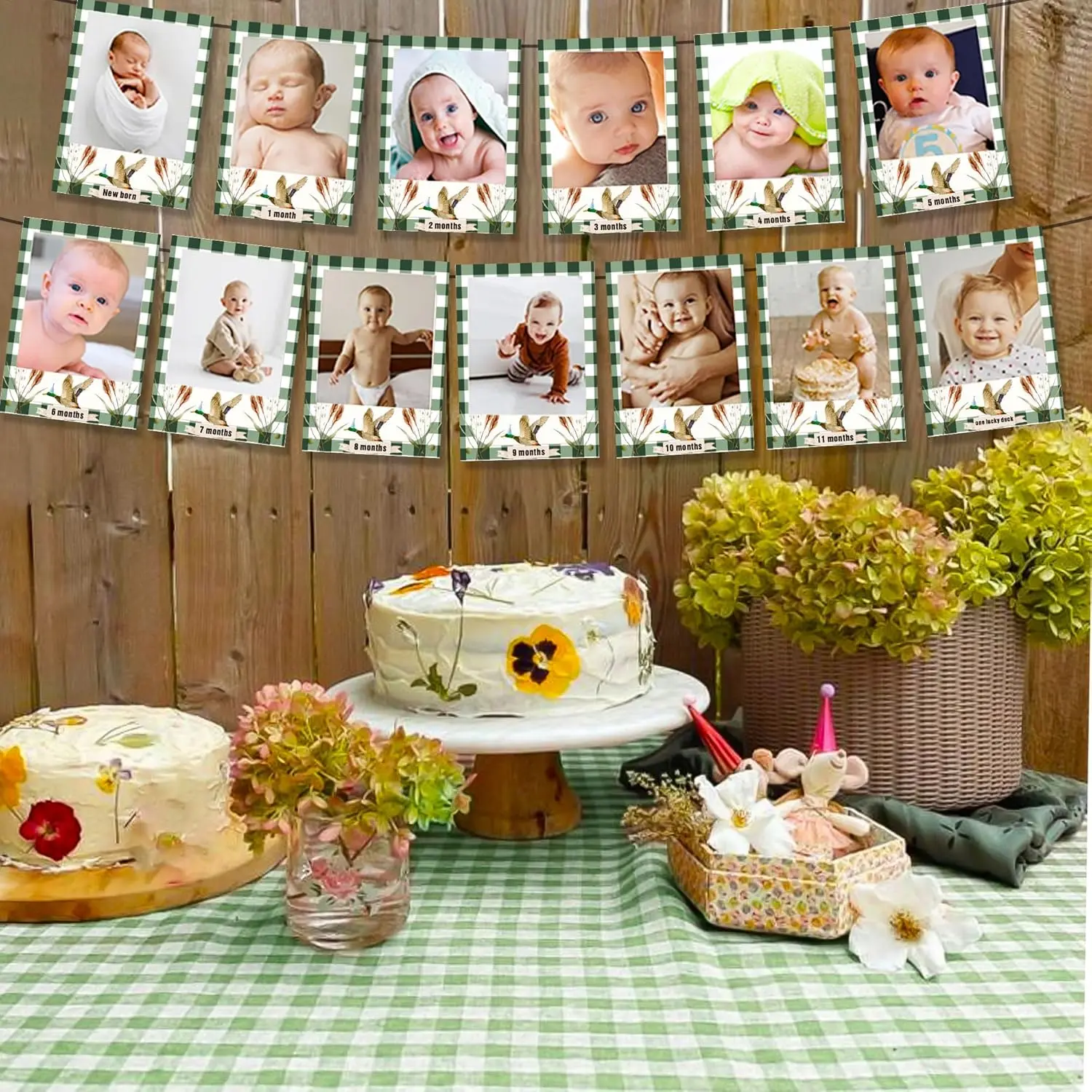• Adorable Mallard Duck 1st Birthday Banner adorned with photos from newborn to 12 months. It creates enjoyable and unforgettable memories. Perfect for baby showers and first birthdays.