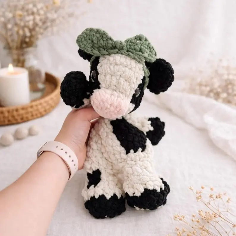 Each cow is handmade with care, giving every piece its own unique character. Whether displayed as a cute room accent or gifted to someone special, this crochet plush makes a sweet and heartwarming keepsake for birthdays, holidays, baby showers, or just because.