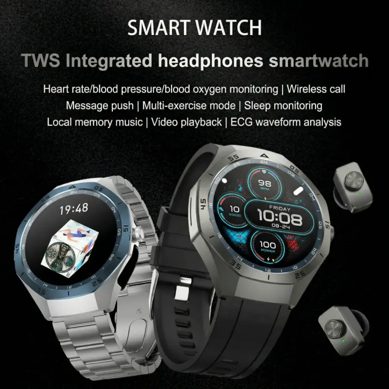F33 Smart Watch for Men with Built in Earbuds Bluetooth Calling 139 Inch HD Round Display Heart Rate Sleep Blood Oxygen Tracking Daily Office Wear Business Tech Style Fitness Tracker