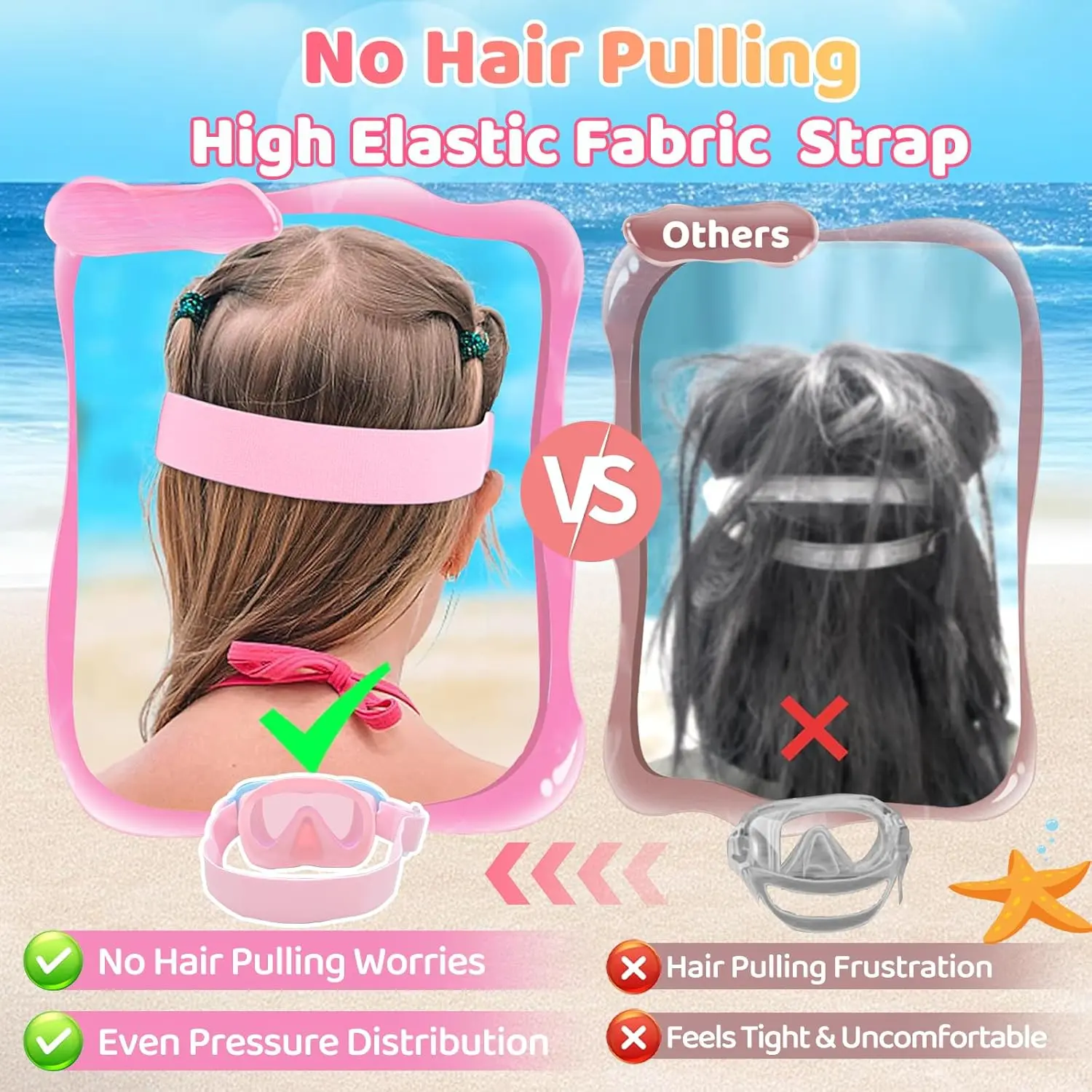 The cloud-like materials mould and adapt to the unique contours of a child's face.This creates a cushioned and snug fit that stays comfortable even during long swim sessions.