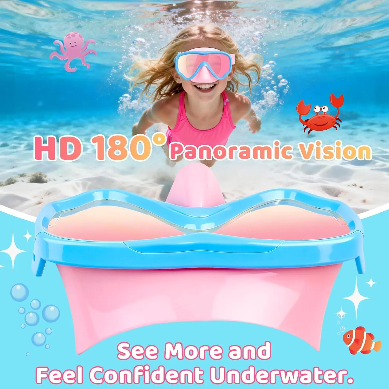 We use anti-fog technology that helps deliver an uninterrupted underwater experience.This allows children to explore clearly without the frustration of constant fogging.