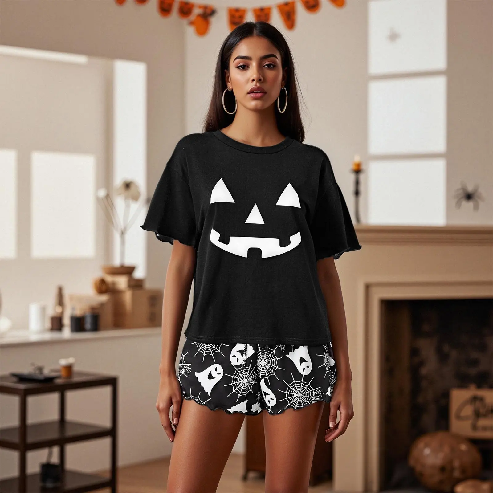 Women 2-Piece Halloween Outfits Pumpkin Face Print Loose T-Shirt and Elastic Shorts for Club Streetwear Features Summer outfit for women; Halloween clothes for women; Women's t-shirt with pumpkin face print, crew neck, short sleeves; Women's shorts, elastic waist design, easy to fit, is the perfect combination of comfort and style Suitable for everyday, pajamas, vacations, beach, sports, leisure, shopping, weekends, dates, vacations, street, work, parties, clubs, galas, nights out Size (cm) S Tops Length: 58Bust: 104Sleeve: 16Shoulder: 51 Pants Length: 32Waist: 66 Hip: 105 M Tops Length: 59Bust: 108Sleeve: 17Shoulder: 52 Pants Length: 33Waist: 70 Hip: 109 L Tops Length: 60Bust: 114Sleeve: 18Shoulder: 53.5Pants Length: 34Waist: 76 Hip: 115 XLTops Length: 61Bust: 120Sleeve: 19Shoulder: 55 Pants Length: 35Waist: 822Hip: 121 Size (inch) S Tops Length: 22.83Bust: 40.94Sleeve: 6.3 Shoulder: 20.08Pants Length: 12.6 Waist: 25.98 Hip: 41.34 M Tops Length: 23.23Bust: 42.52Sleeve: 6.69Shoulder: 20.47Pants Length: 12.99Waist: 27.56 Hip: 42.91 L Tops Length: 23.62Bust: 44.88Sleeve: 7.09Shoulder: 21.06Pants Length: 13.39Waist: 29.92 Hip: 45.28 XLTops Length: 24.02Bust: 47.24Sleeve: 7.48Shoulder: 21.65Pants Length: 13.78Waist: 323.62Hip: 47.64 Specification Condition: 100% Brand New Material: 95% Polyester 5% Elastane Style: Fashion Gender: Women Season: Summer Pattern: Pumpkin Face Print Occasions: Daily Package Including: 1* Tops 1* Shorts Note: There may be 1-2 cm deviation in different sizes, locations and stretch of fabrics. Size chart is for reference only; there may be a little difference with what you get. Color may be lighter or darker due to the different PC display. d Age: 12-18 Months 18-24MTops Length: 18.5 Bust: 22.83Sleeve: 12.6 Shoulder: 10.24Pants Length: 18.5 Waist: 16.54Hip: 23.62 Advised Age: 18-24 Months Specification: Advised Age: 0-6 Months, 6-12 Months, 12-18 Months, 18-24 Months Materials: Romper: 95% Cotton and 5% Elastane and Pants: 70% Cotton and 30% Polyester Pattern: Plaid Color: Khaki Gender: Baby Boy Package Contents: 1 * Romper + 1 * Pants Note: 1. Please understand there may be a 1-2 cm deviation exist. 2. Due to the lighting and monitors, there is a slight difference between the picture and the real item. Promise: If the product has any quality problems, please relate with us, we will help you solve the problem as quickly as possible.