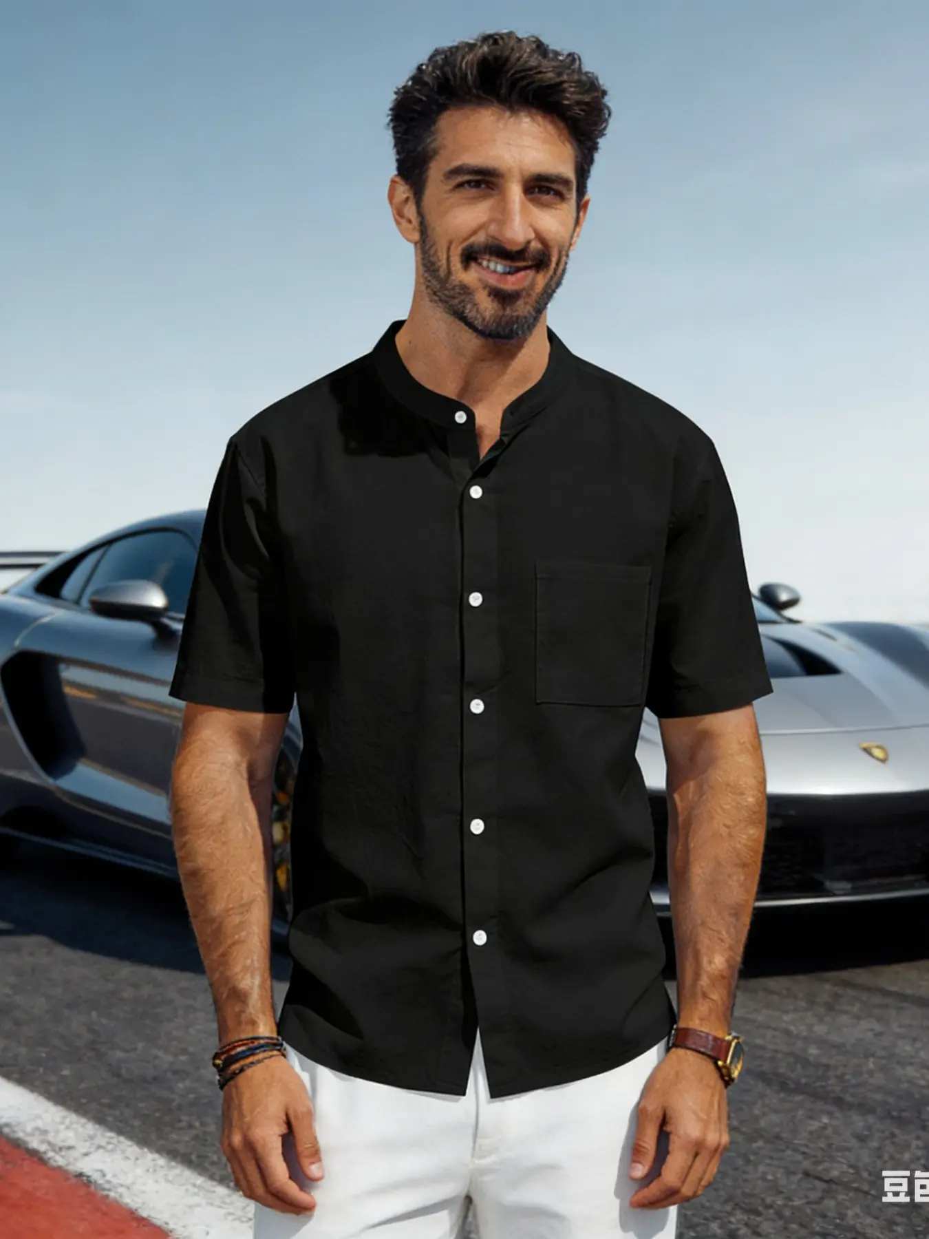 American Summer Linen Casual Men's Hawaiian Shirt, Simple Retro Stand Collar Short Sleeve, Comfortable and Stylish Summer Wear