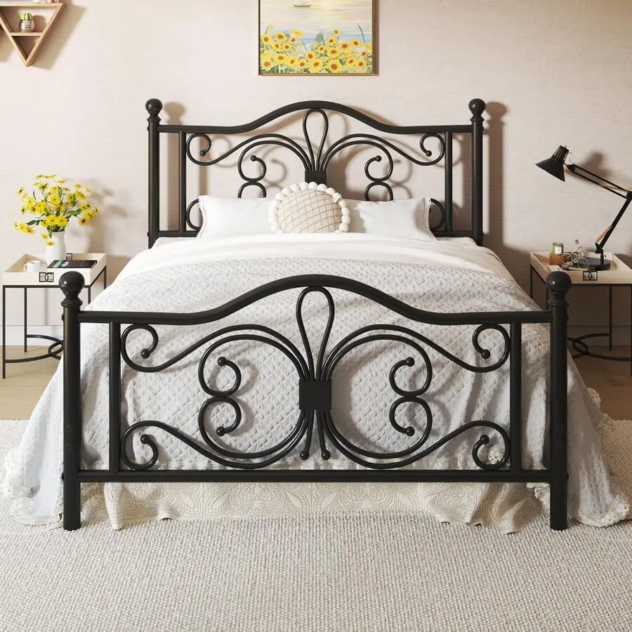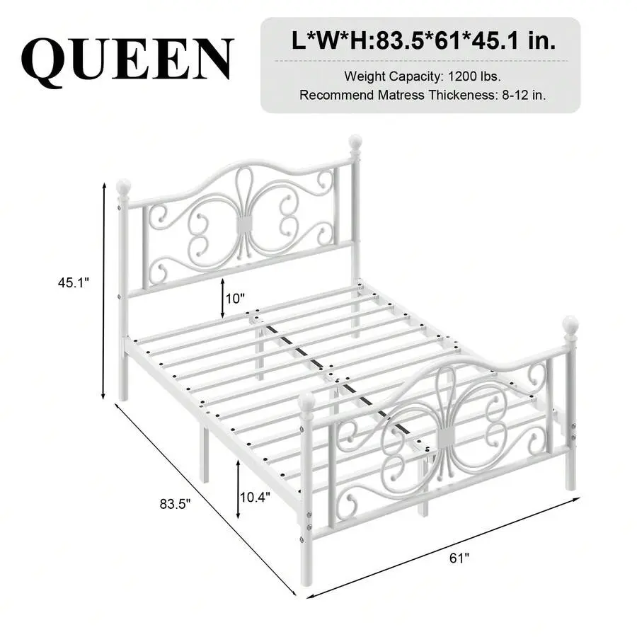 [Strong and Durable] Queen size bed frame is made of metal and wood slats, with 12 wood slats and 9 metal legs, giving you strong support for a relaxing sleep.The powder-coated finish is moderately rust- and scratch-resistant for long-term use.Plus, it won't wobble when assembled correctly.