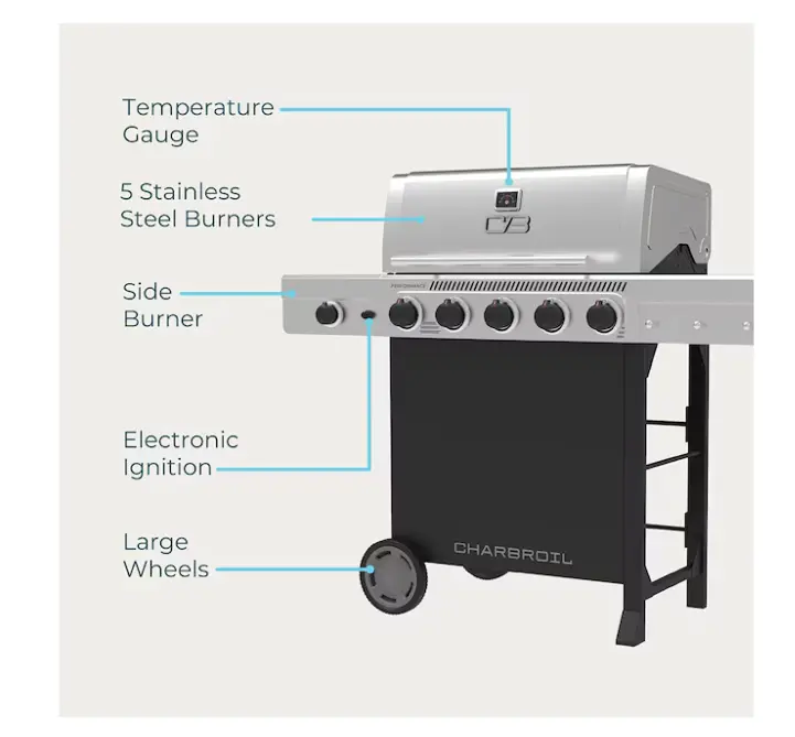 Charbroil Performance Series Black and Silver 5 -Burner Liquid Propane Gas Grill 1 -Side Burner