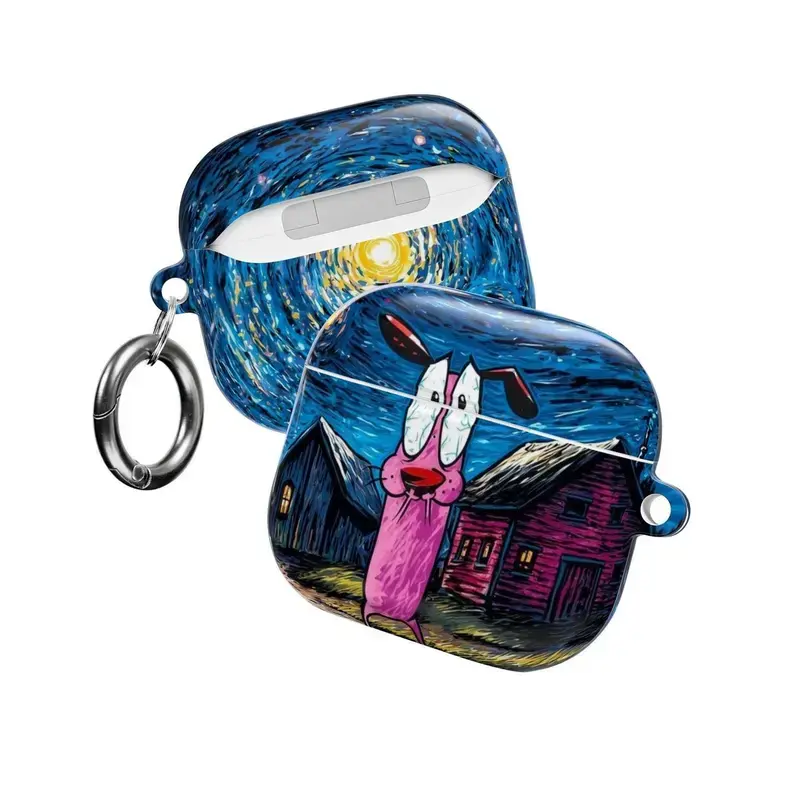 Courage the Cowardly Dog Neon Storm Psycho Art Earbuds Case Cover for Apple AirPods Pro 1, 2, 3, AirPods 1,2,3,4