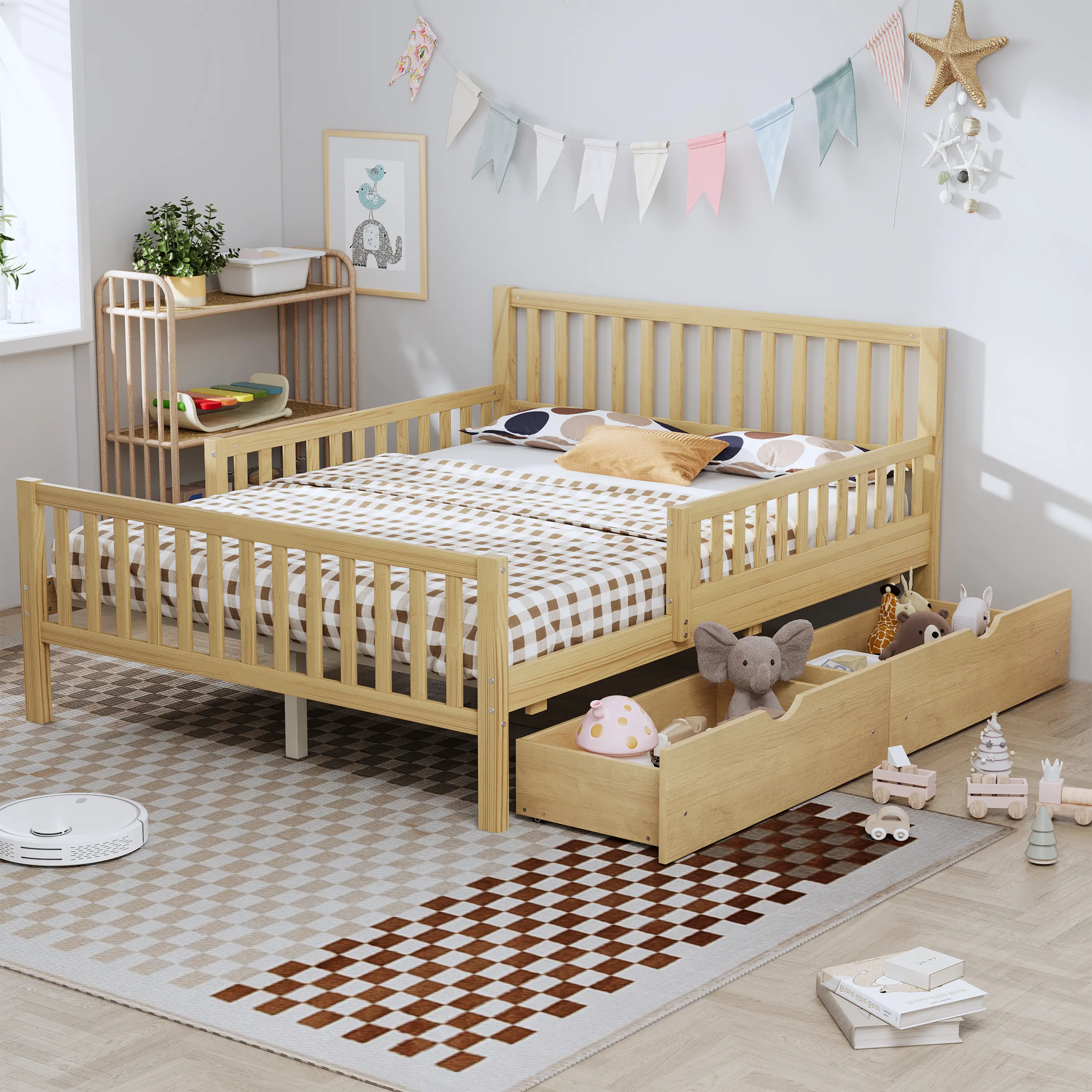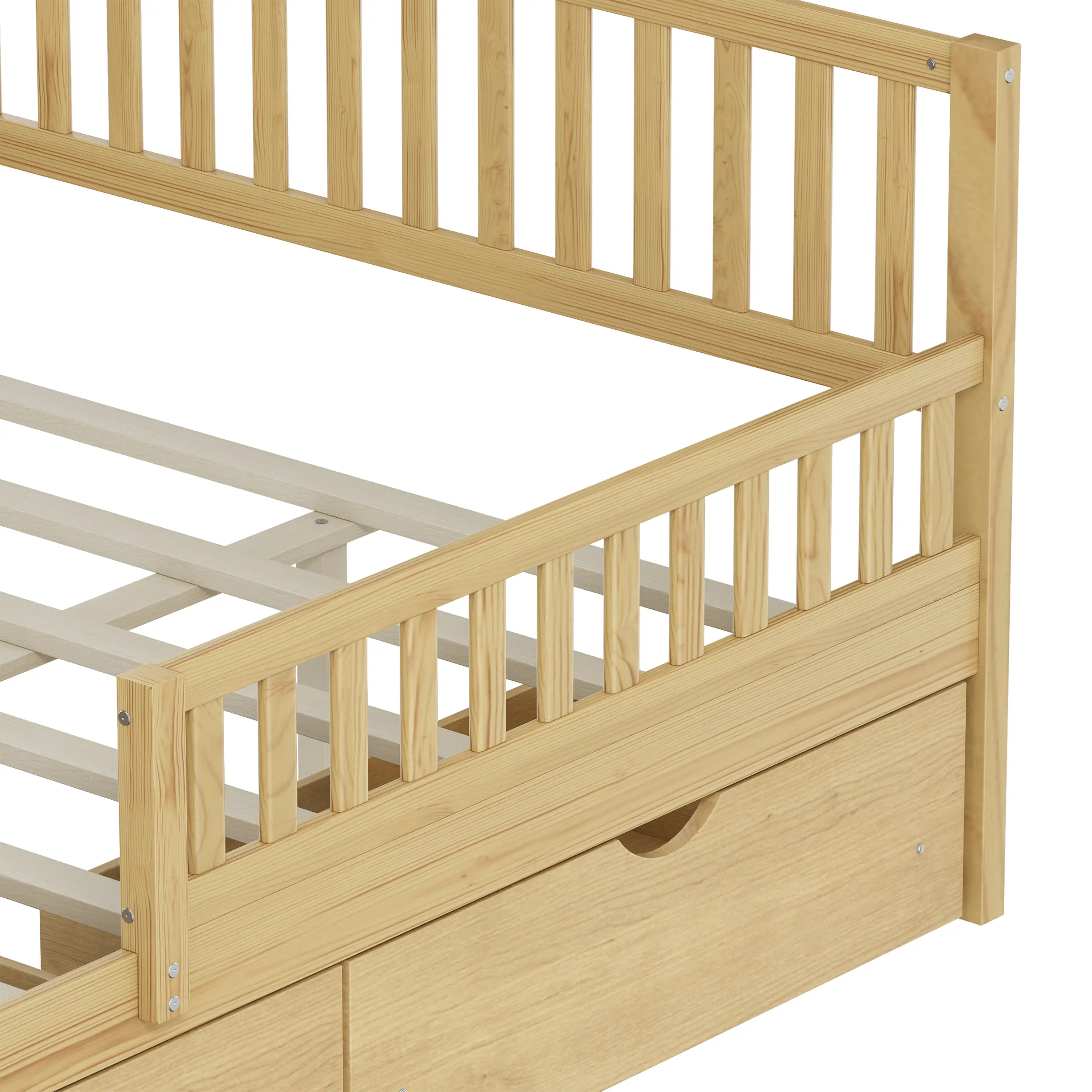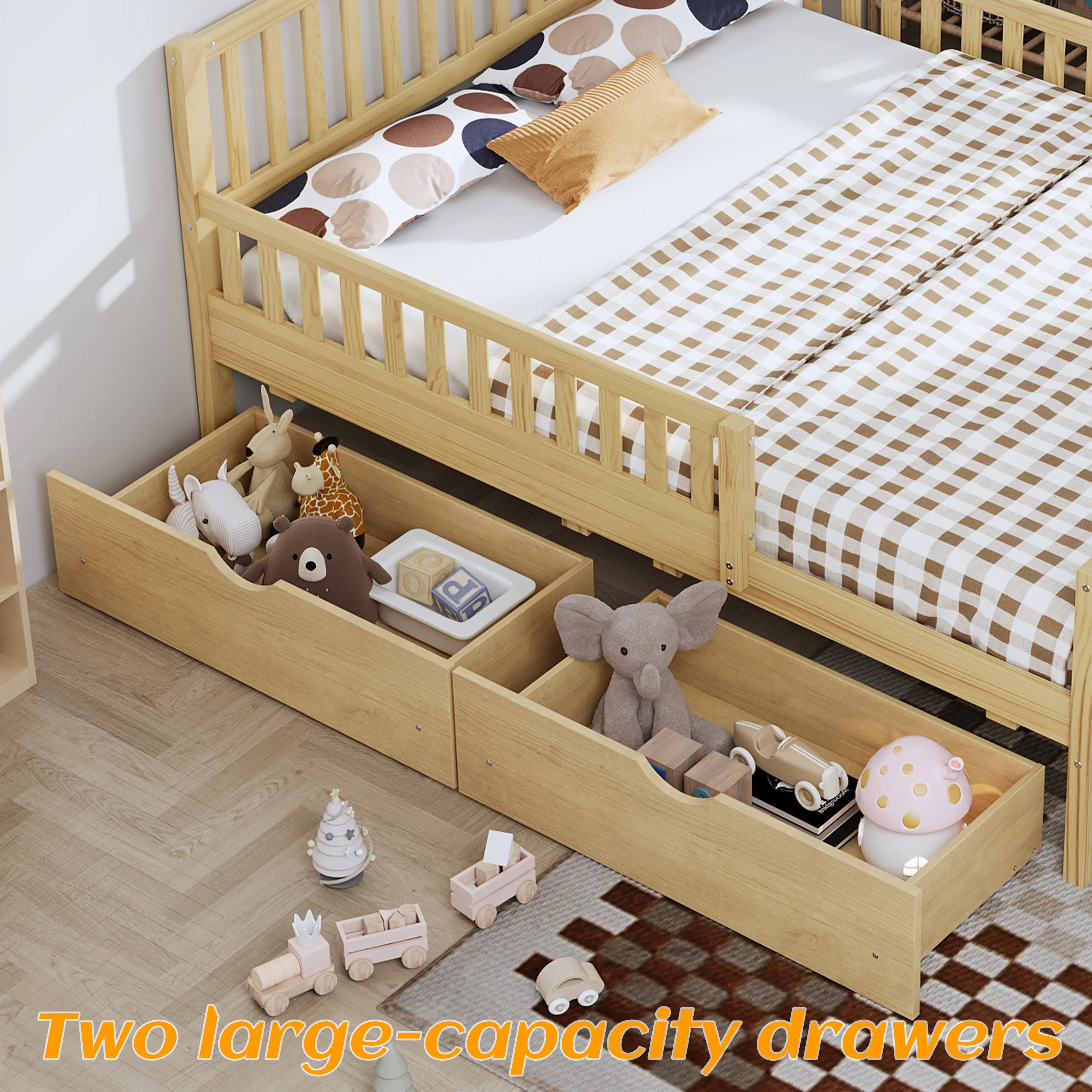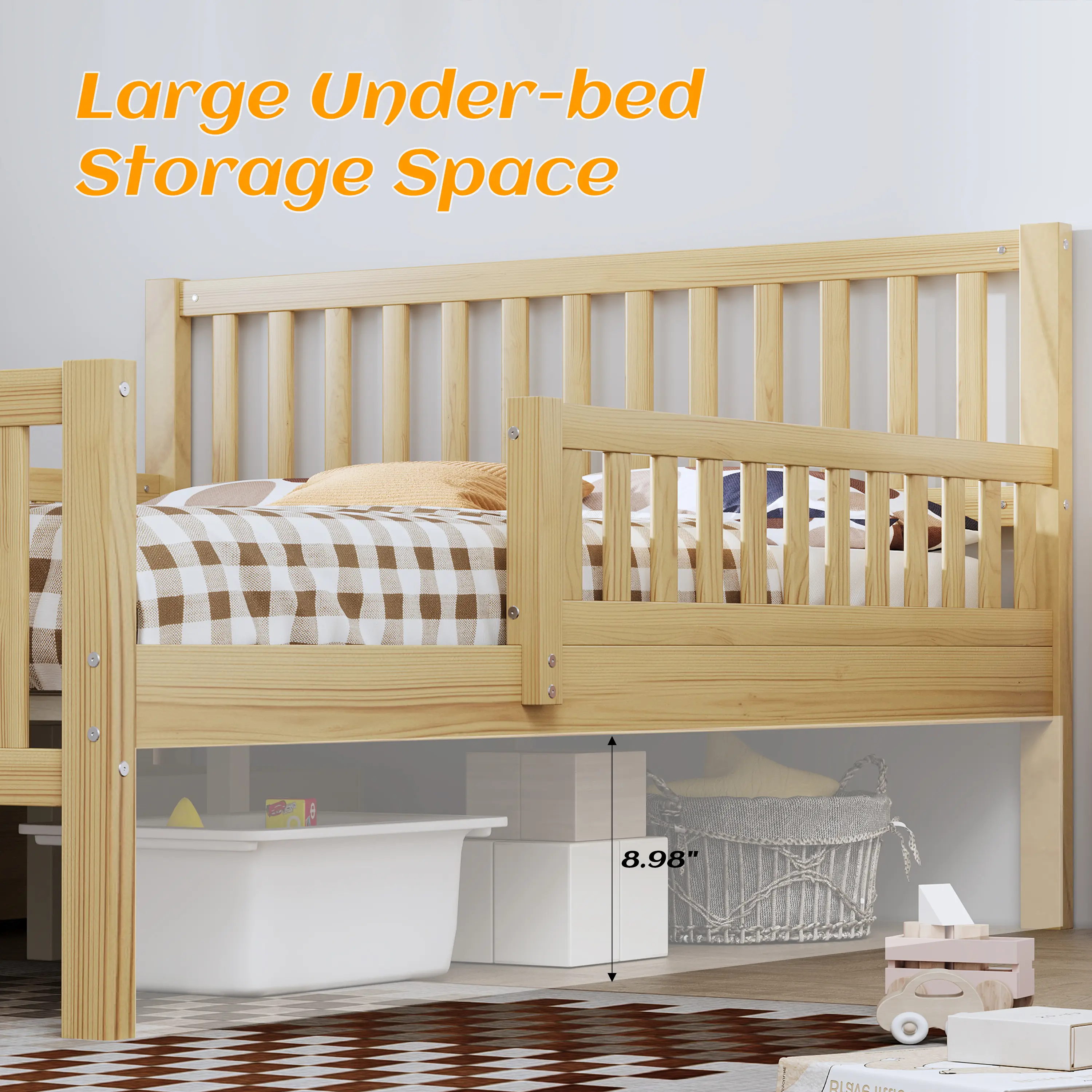Twin bed rail on both sides for security: The bed comes with guardrails on both sides, serving as an effective twin bed rail to help prevent accidental falls during sleep. This design provides a more secure sleeping environment without needing extra bed rails. Available in twin size (40.8" wide) and full size (57.5" wide).